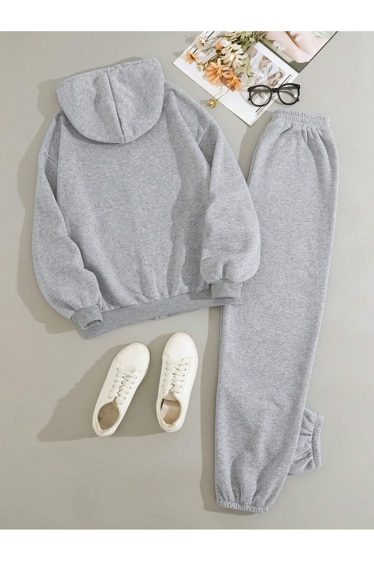 Uzun kollu sweatshirt ve lastikli paça pantolon, hareket özgürlüğünüzü kısıtlamaz.