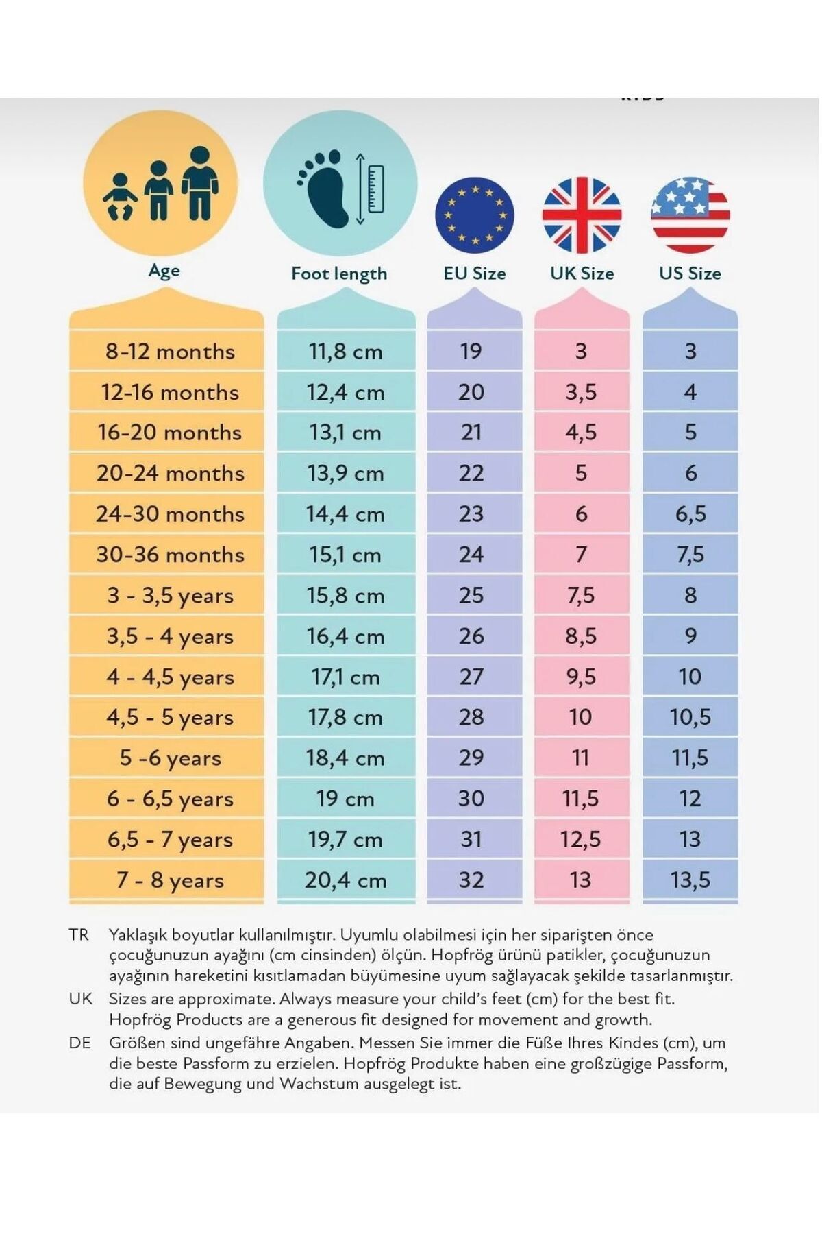 Çocuklar için özel olarak tasarlanmış yaş grubu, onların ayak yapısına uygun konfor sunar