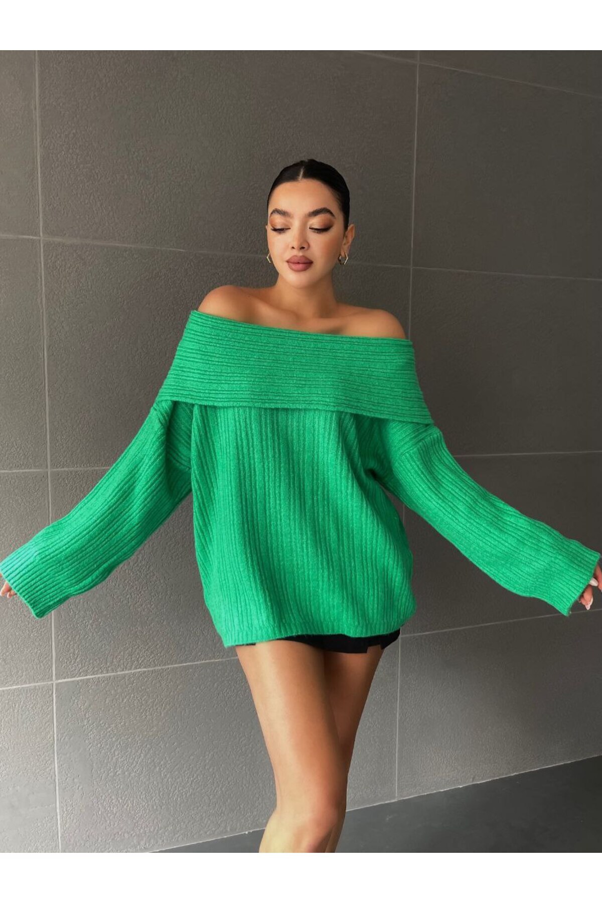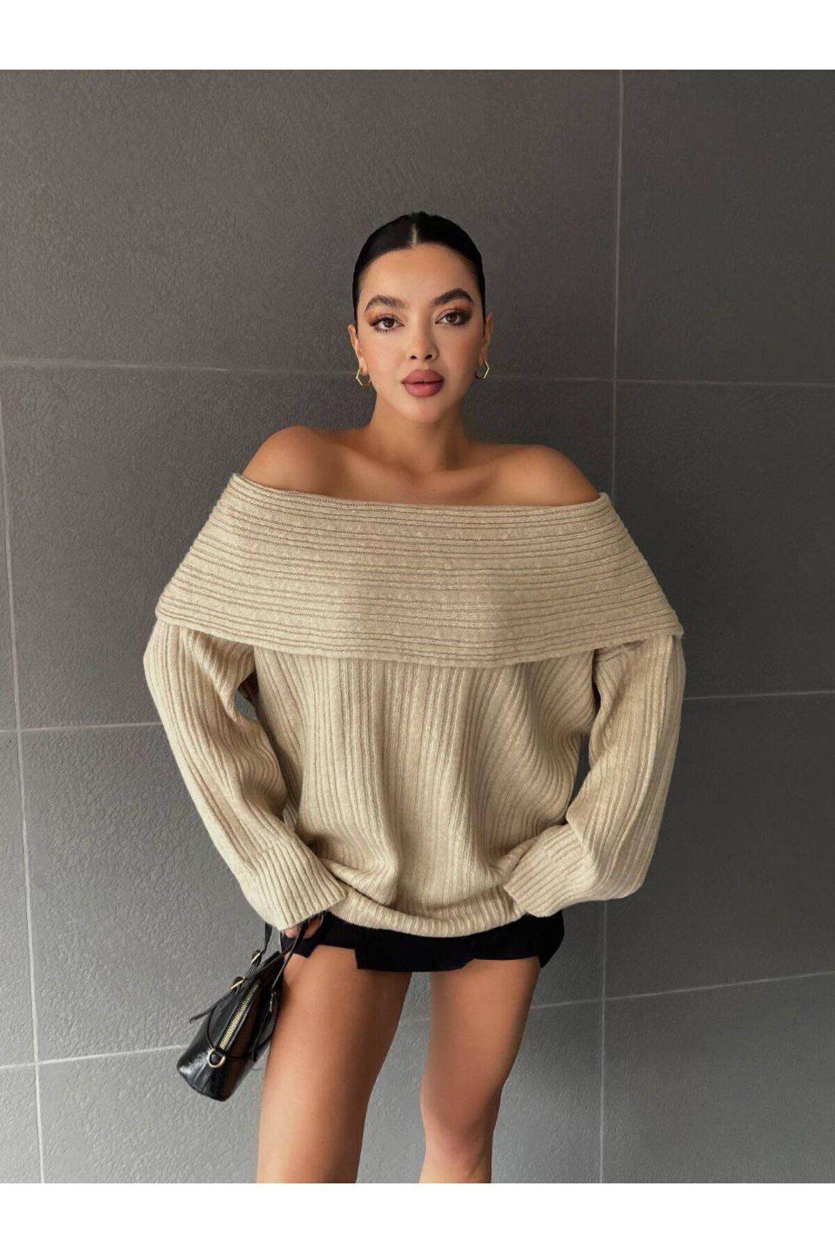 - Rahat kesimi ve omuzları açık tasarımı ile modern bir görünüm sunar