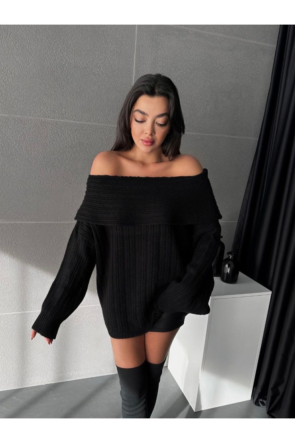 - Sade ve şık tasarımıyla her ortama uyum sağlayan düz desenli siyah kazak