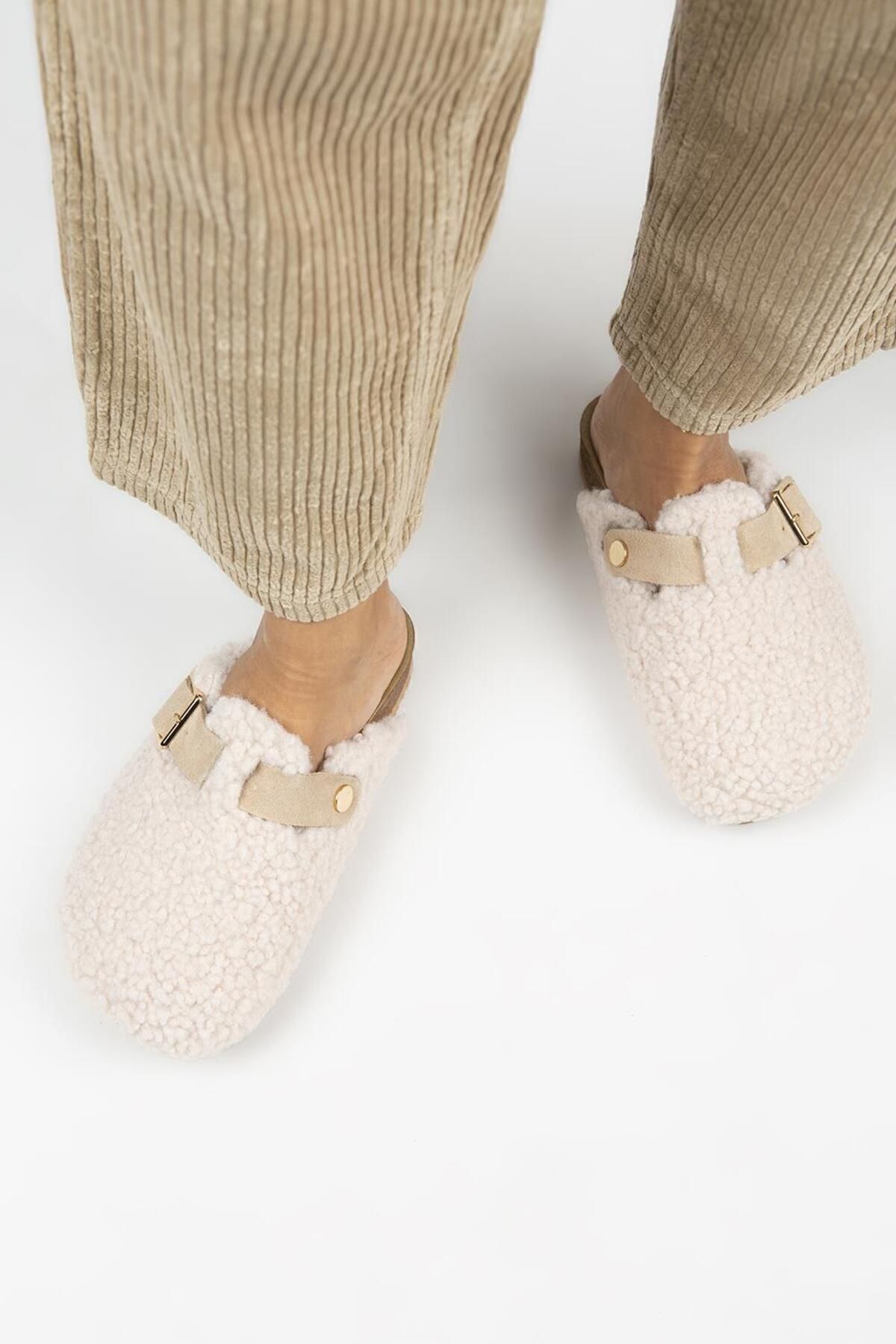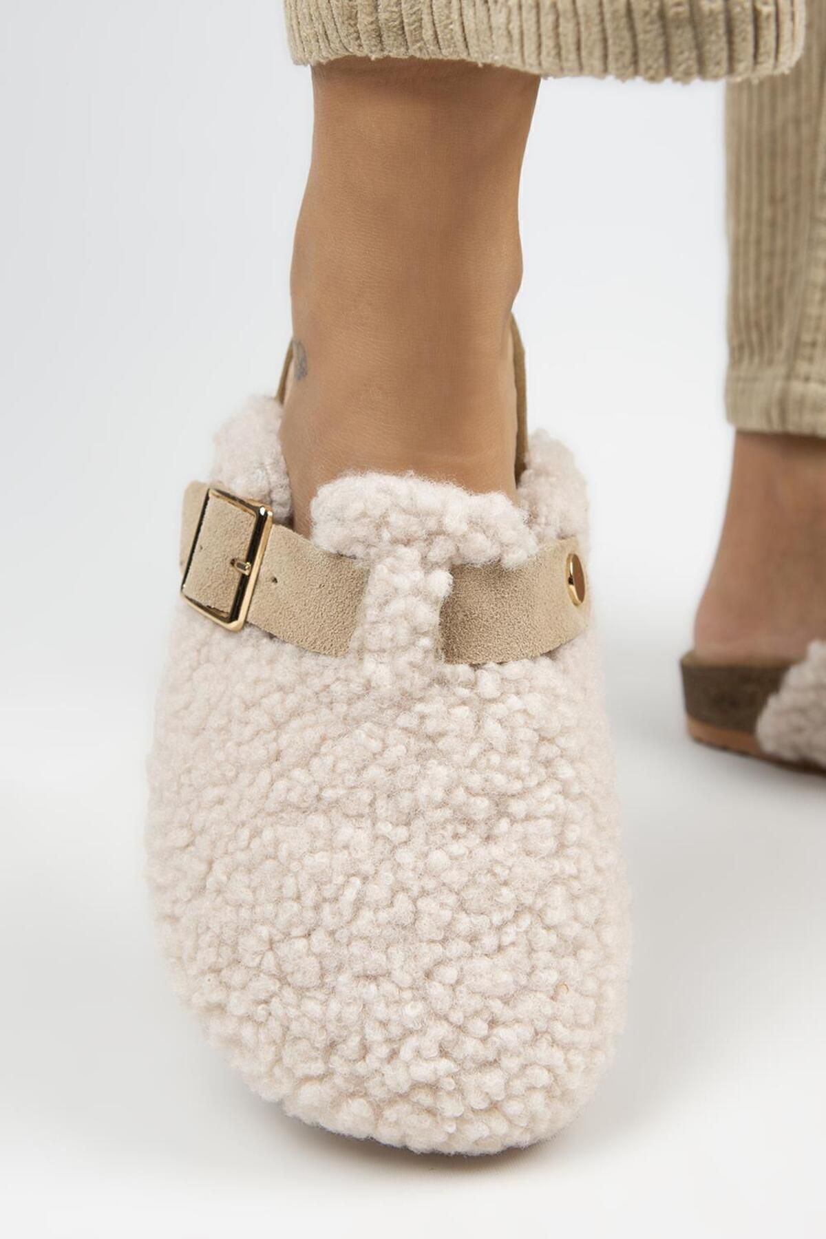 Sade ve şık tasarımıyla her kıyafetle uyum sağlayan düz desenli bej terlik