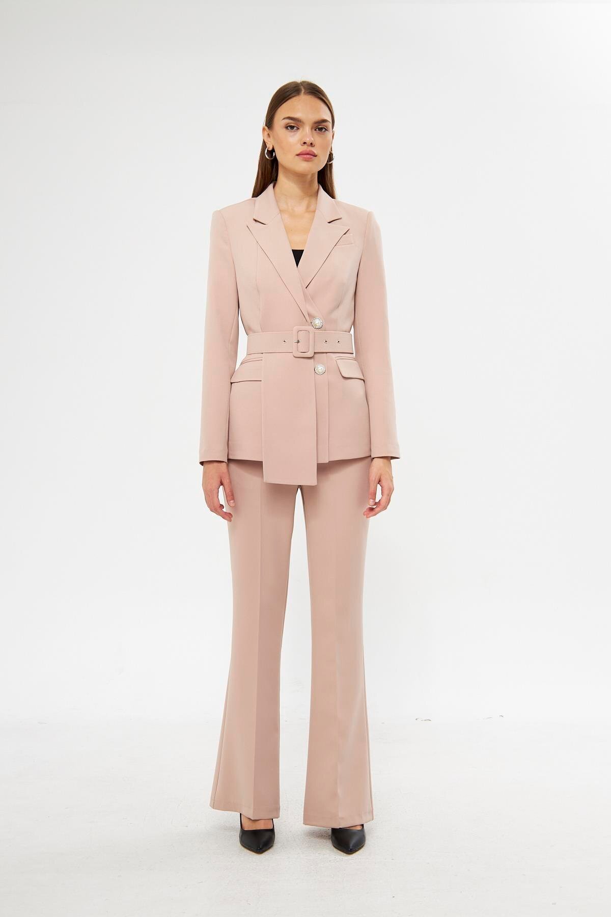 - Şık ve gece ortamları için ideal, yaka detaylı ispanyol paça takım elbise