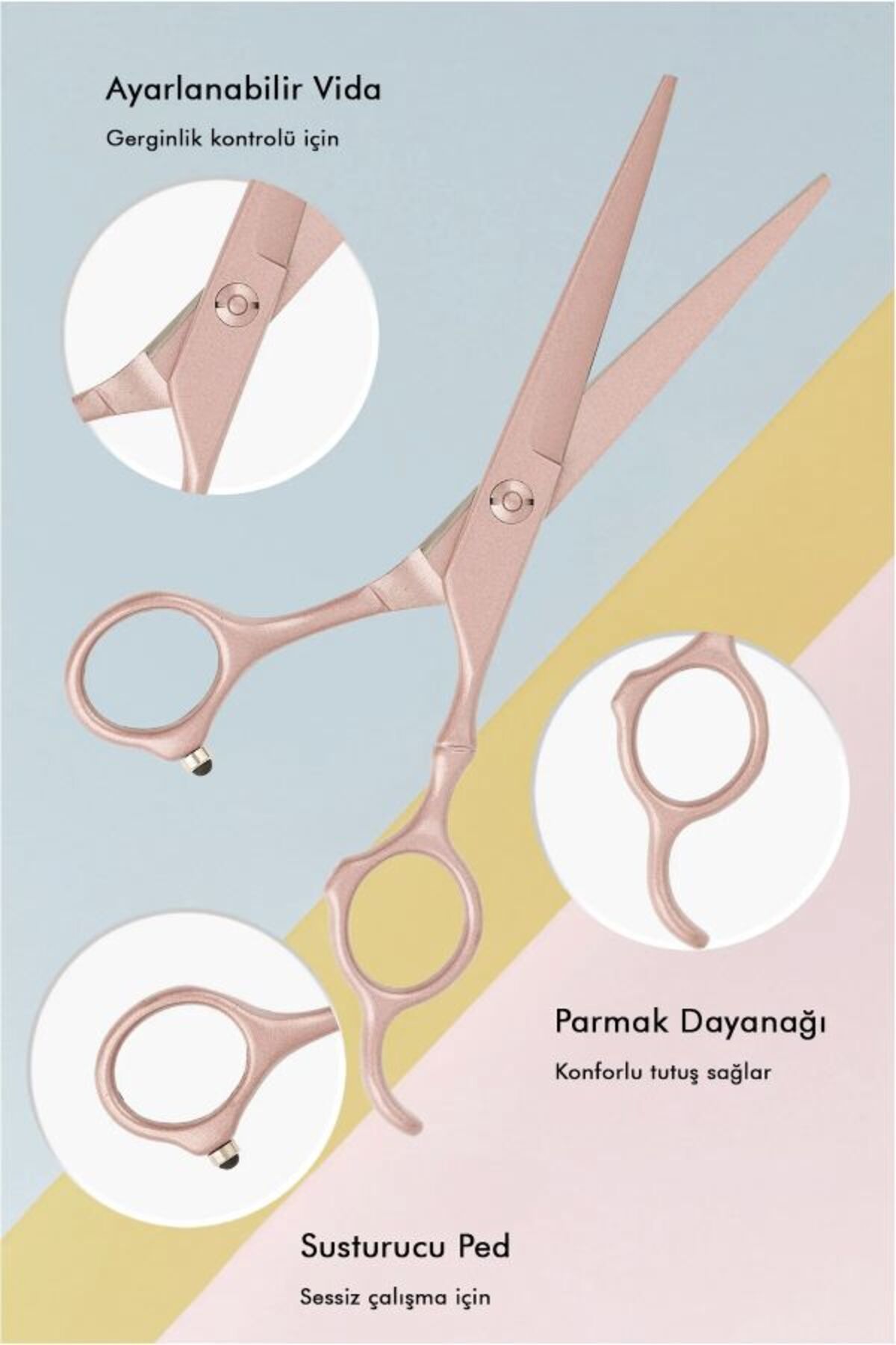 Mat yüzeyli gül kurusu profesyonel salon saç kesim makası 6 inç - 17cm uzunluk Kendinden bileyli 440C japon çeliğinden üretilen ürünümüz 10/180 paslanmaz çeliktir