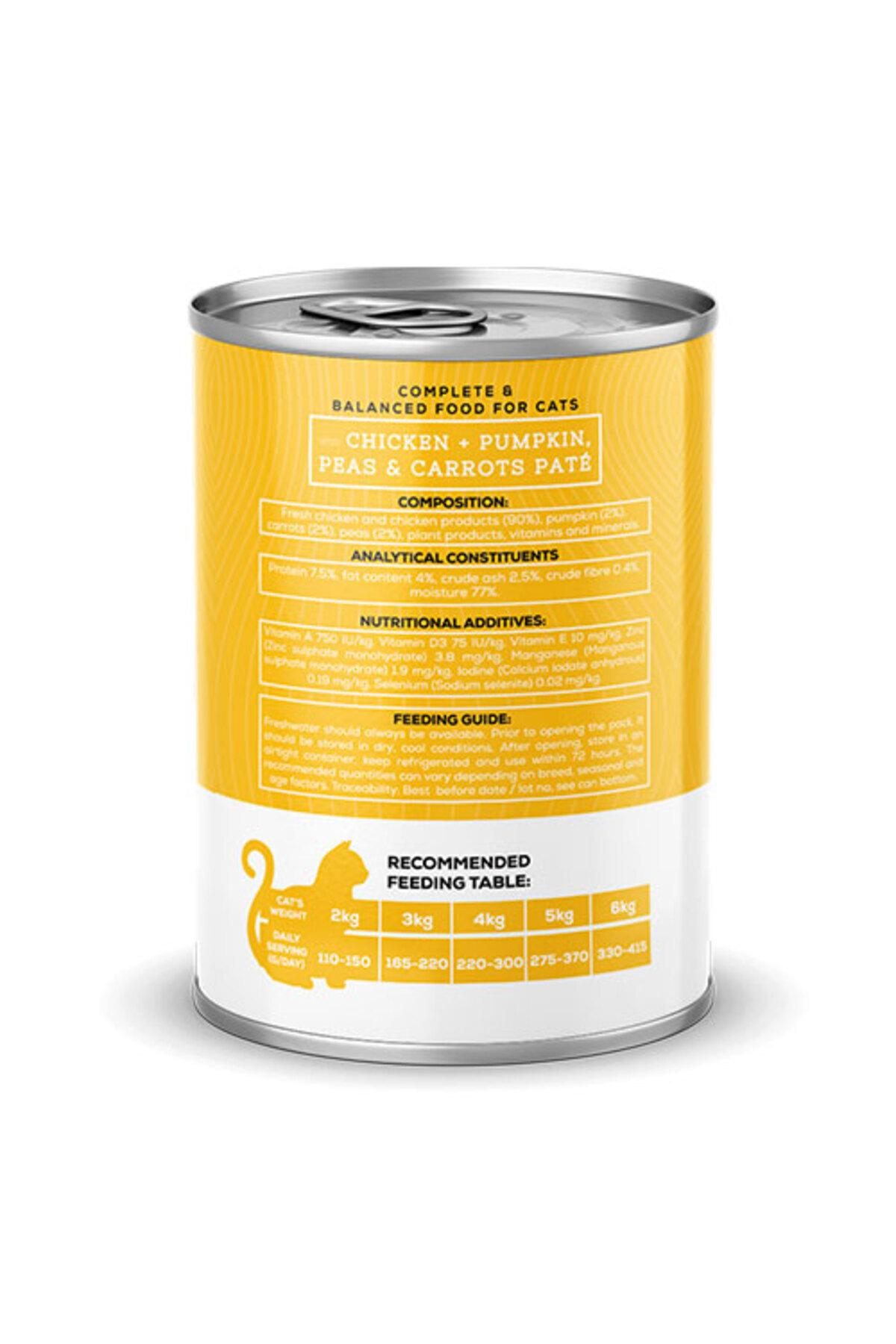 Lezzetli tavuk eti, sağlıklı balkabağı, bezelye ve havuç ile birleşerek kedinizin en sevdiği öğünlerden biri haline gelir.