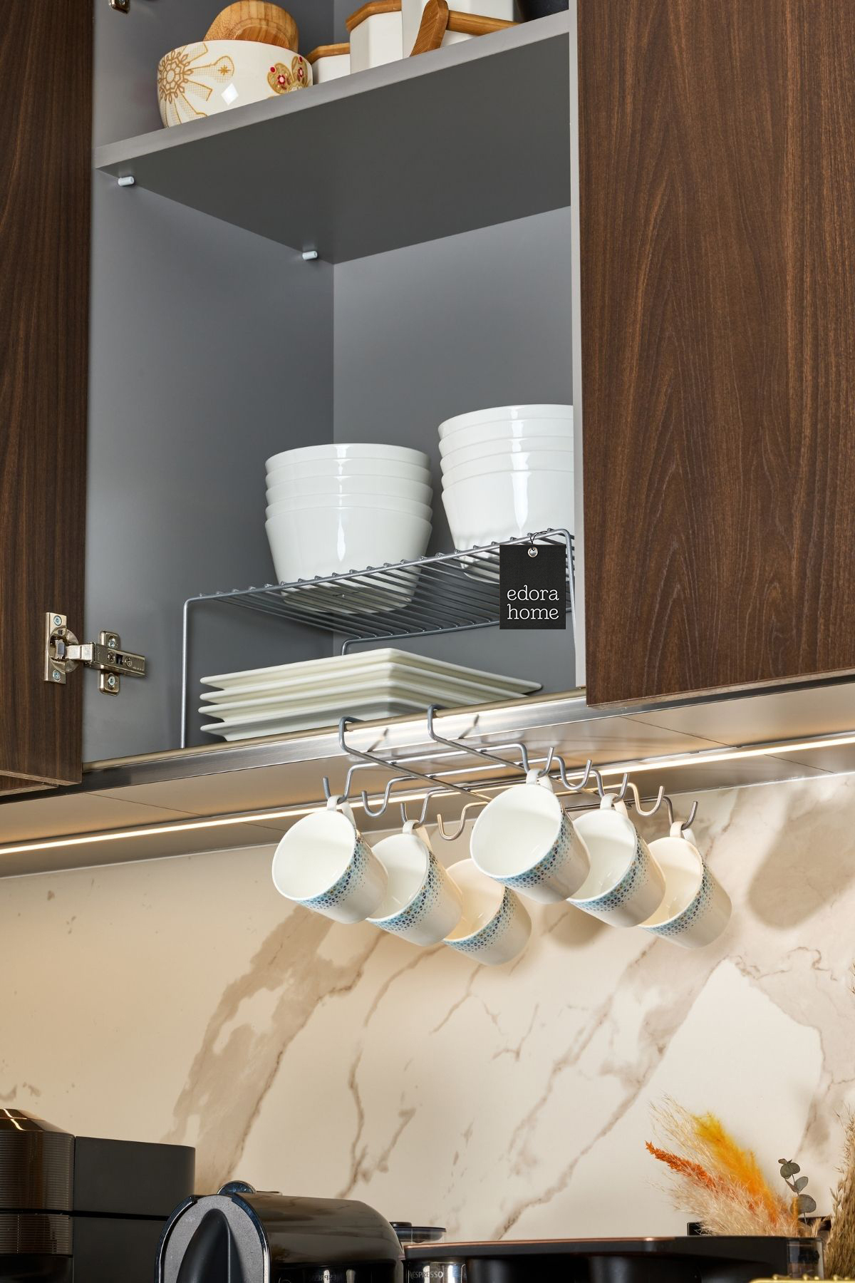 Gümüş Çok Amaçlı Dolap Içi Düzenleyici Tel Raf, Fincan Tabak Kase Organizer - Metal Paslanmaz