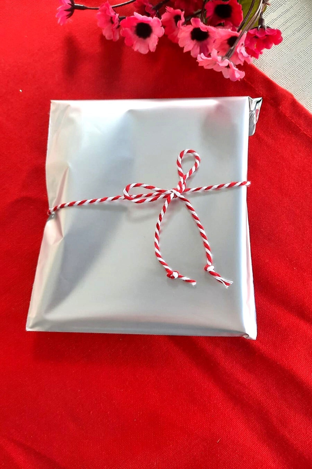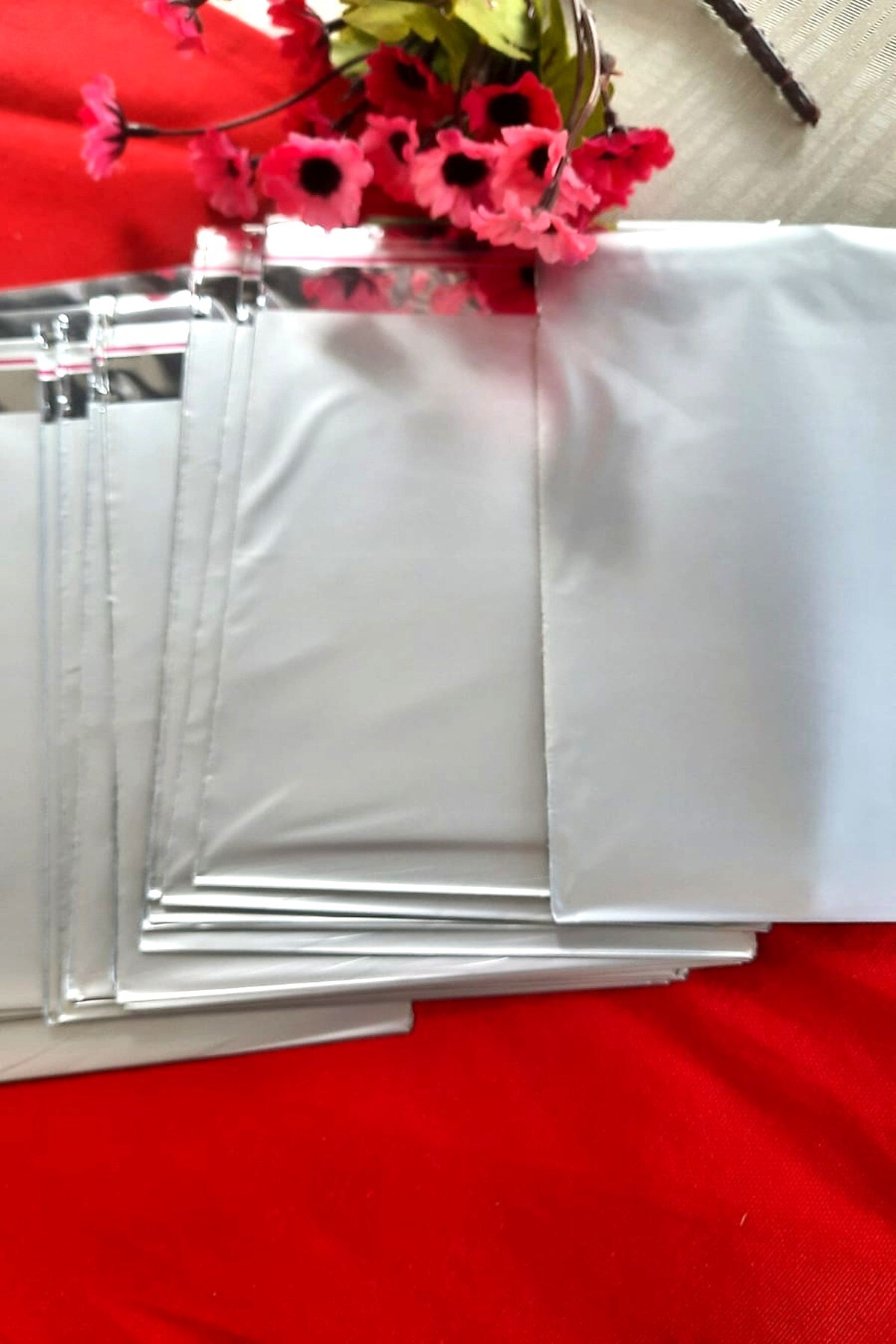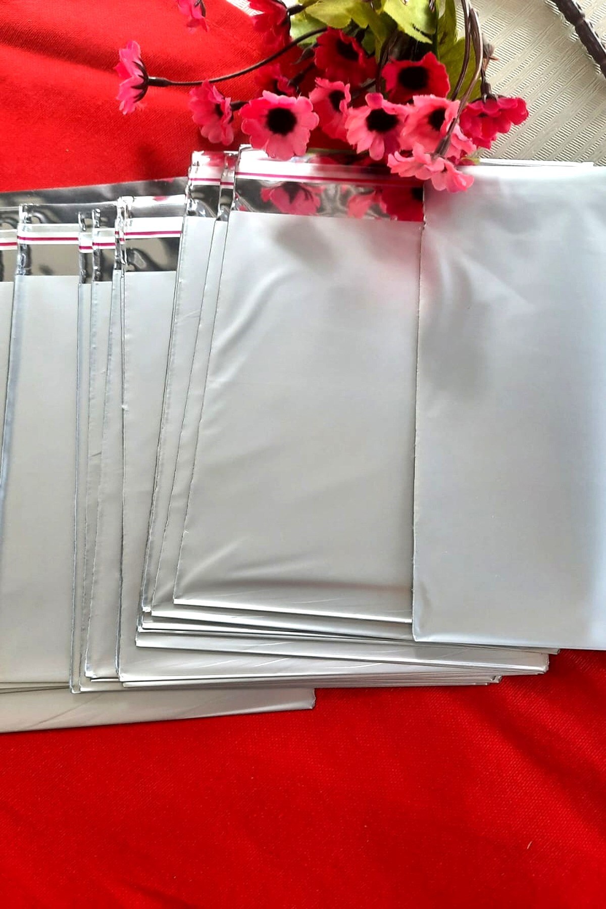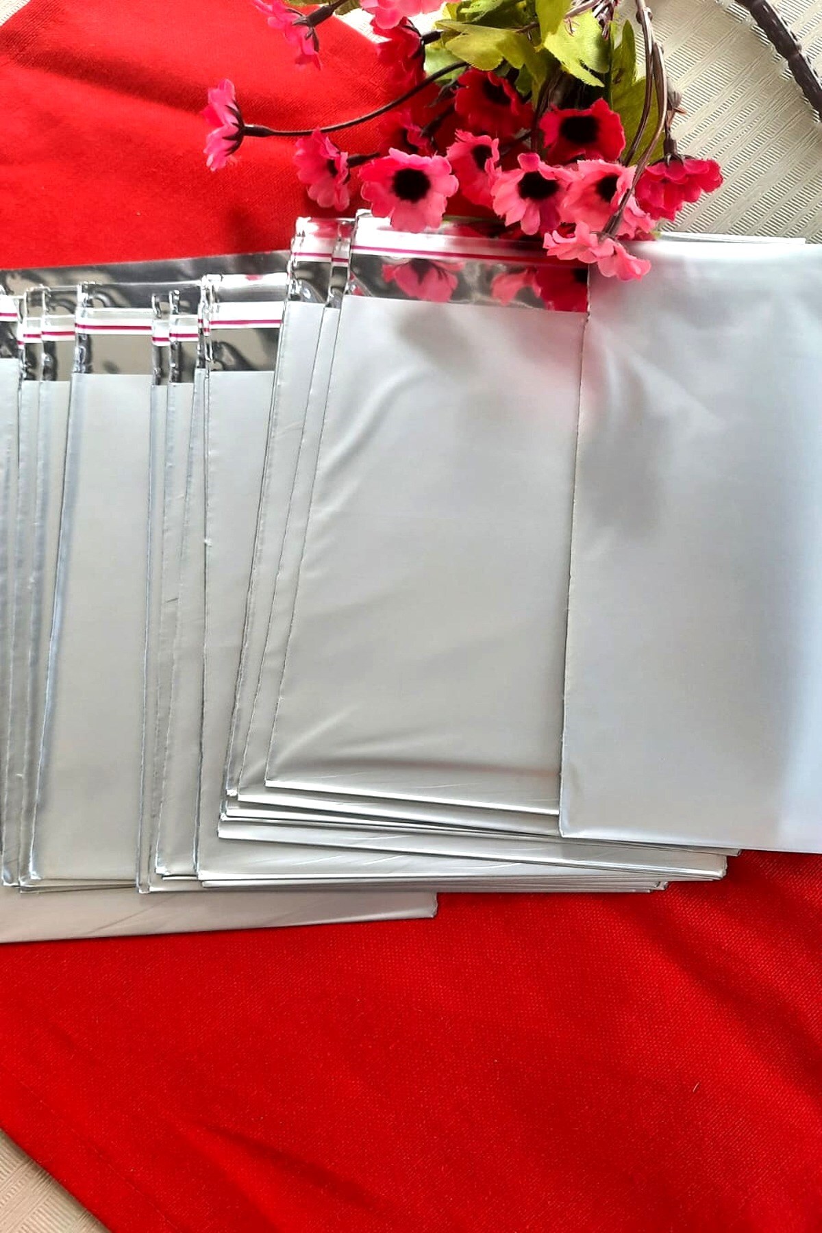 15 x 25 cm Gümüş Janjanlı 10 Adet Hediye Paketi - Yapışkanlı