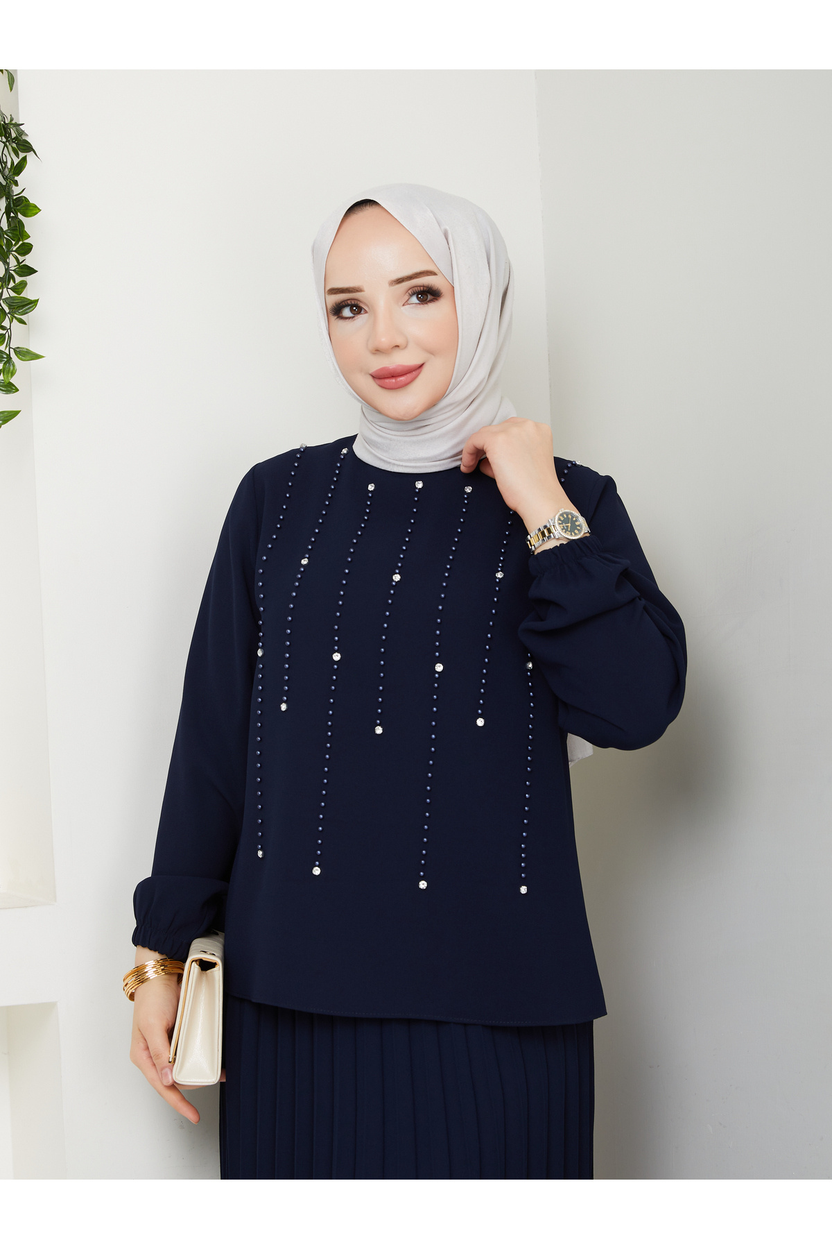 Boncuklu Taşlı Etekli Fırfırlı Büyük Beden Ikili Takım