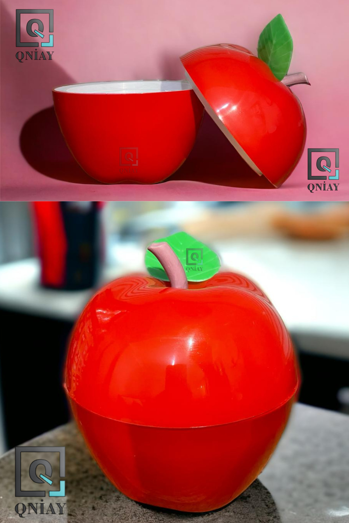 Kırmızı Elma Şekilli Buz Kovası Kamp Plaj Dekoratif Ergonamik Kapaklı Sunumluk Çerezlik