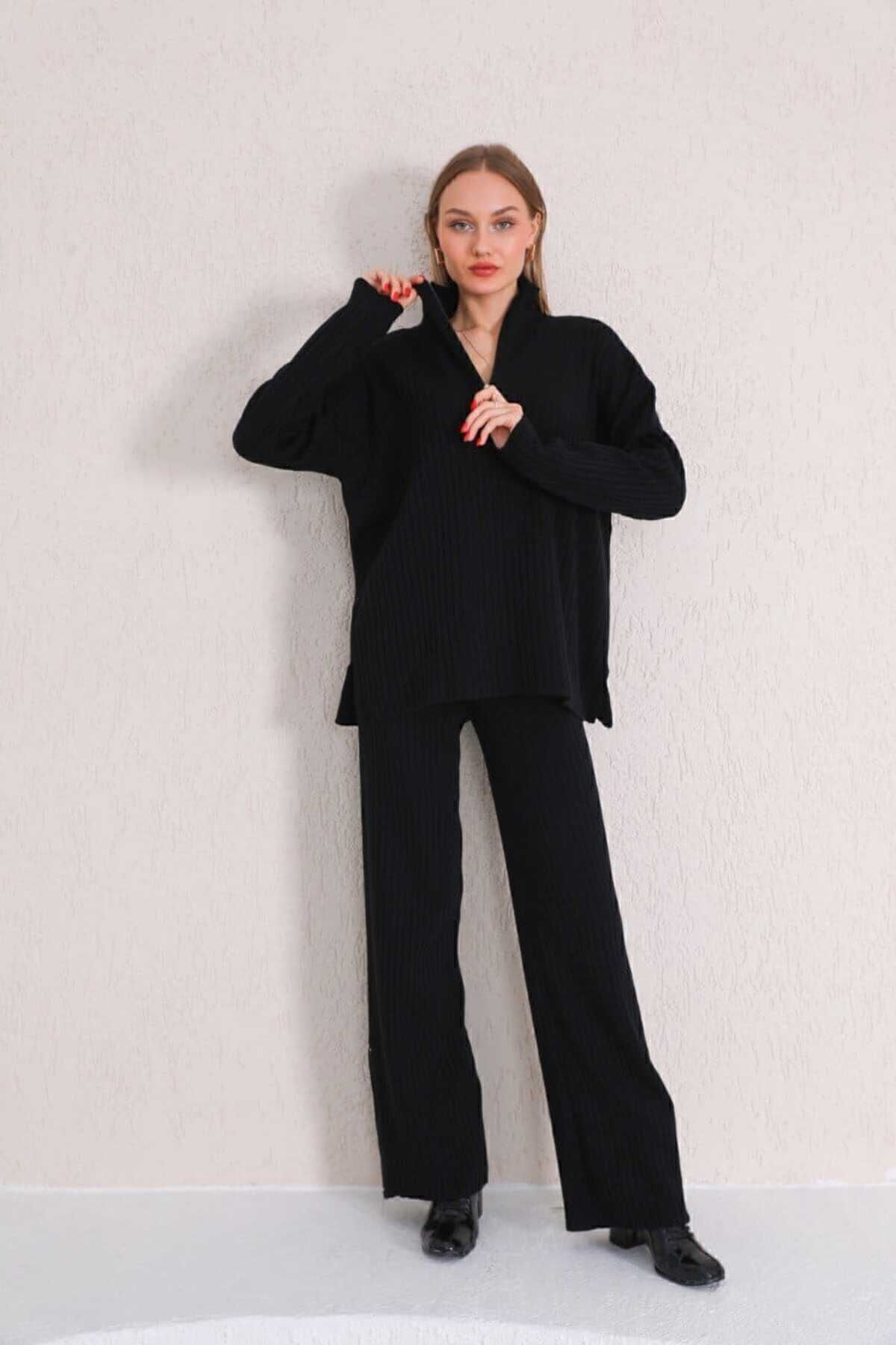 Kazak ve pantolon olmak üzere iki parçadan oluşan set, pratik kombin seçenekleri sunuyor.