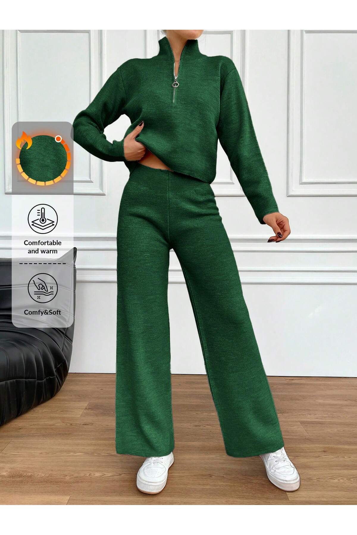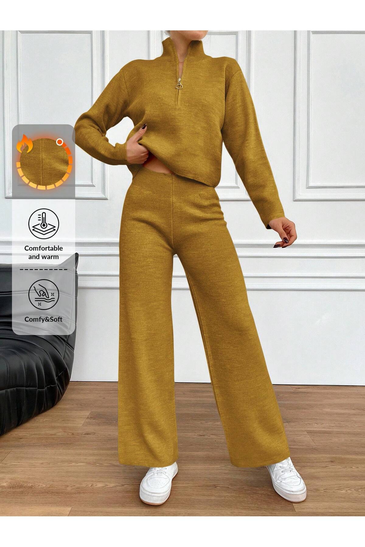 Bu şık ve modern triko kazak-pantolon takımı, günlük giyimde şıklığı ve rahatlığı bir arada arayan kadınlar için mükemmel bir seçim. HAKIM yaka FERMUARLI kazak, zarif ve sofistike bir görünüm sunarken, ile modern bir stil ifadesi yaratıyor. Kazak, yumuşak ve esnek örgü kumaşı sayesinde gün boyu konforlu bir kullanım sağlıyor. Takımın diğer parçası olan pantolon, lastikli beli ile rahat bir oturuş sunarken, örgü yapısı sıcak tutuyor ve şık bir görünüm sağlıyor. Bu takım, hem evde hem de dışarıda rahatlıkla kullanılabilir. Dikkat çekici tasarımı ve trend görünümü ile bu triko kazak-pantolon takımı, stil sahibi bir moda ifadesine dönüşüyor. Hem şık hem de işlevsel olan bu takım, soğuk havalarda stilinizi korumanızı sağlayacak.