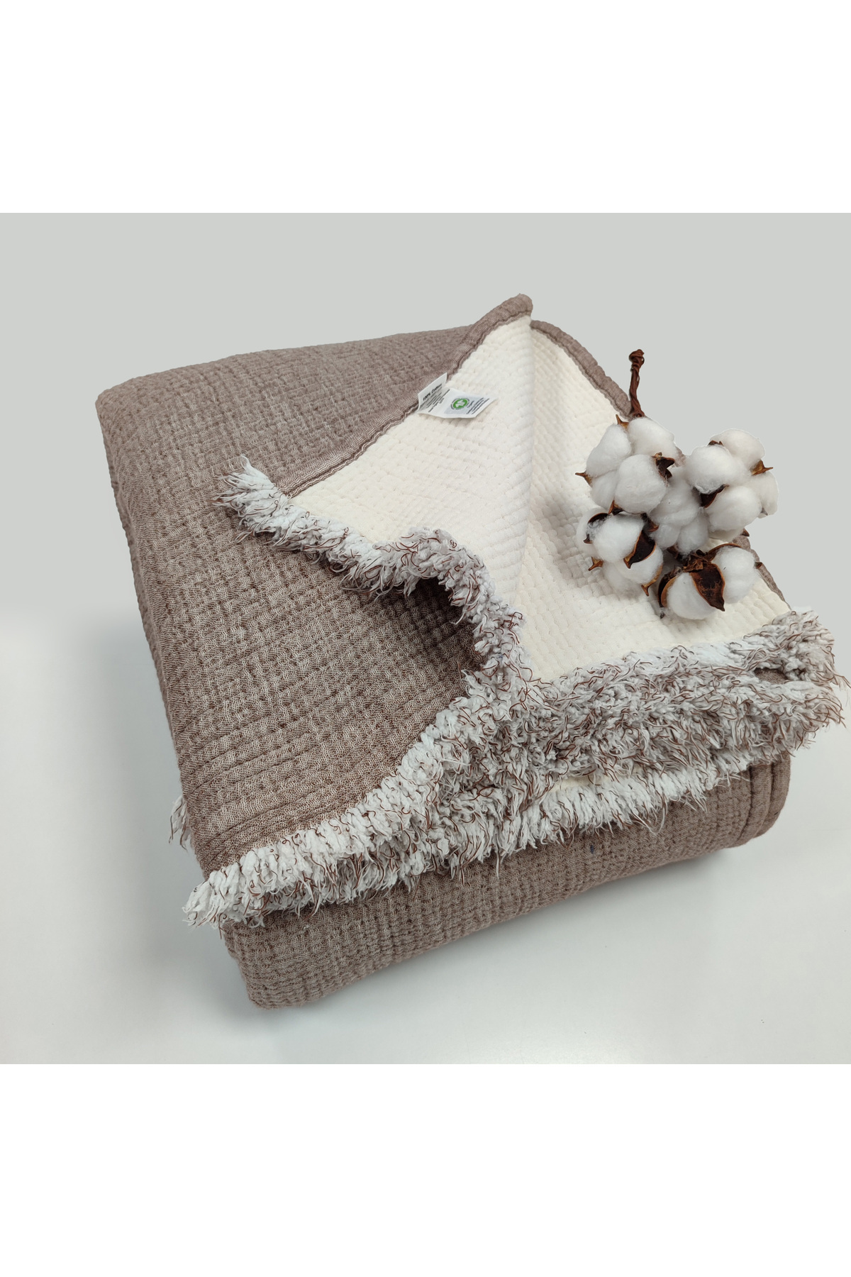 •6 katlı müslin yorganlarımızın en üst iki katmanı ve en alt iki katmanı %100 pamuktur.