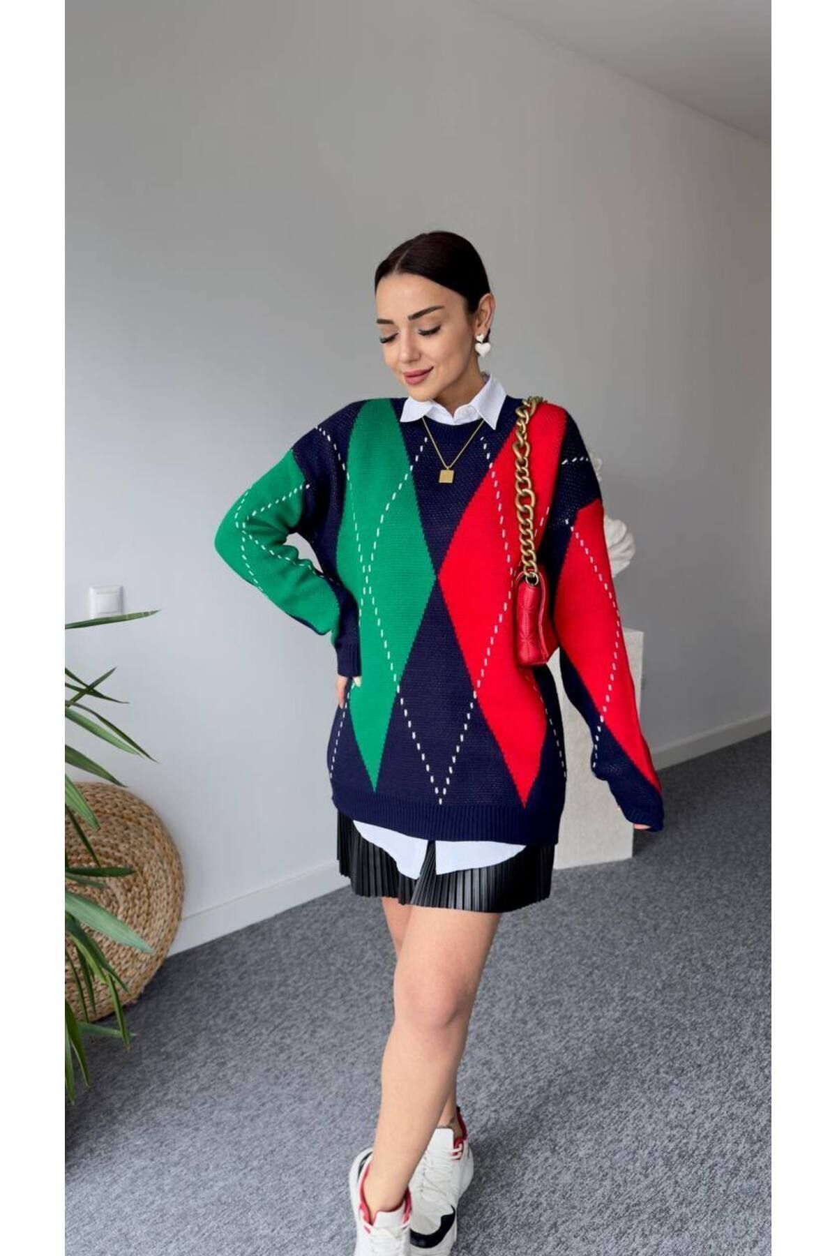 Baklava deseniyle modern ve sofistike bir görünüm kazandırırken, oversize kalıbı rahat bir kullanım sağlar.