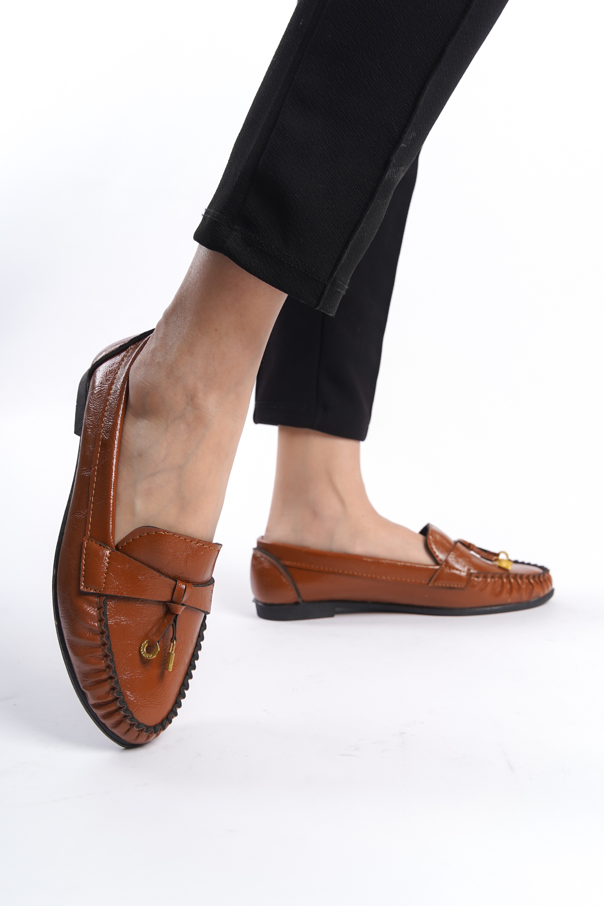 Düz topuklu yapısı sayesinde gün boyu konforlu bir deneyim sunar