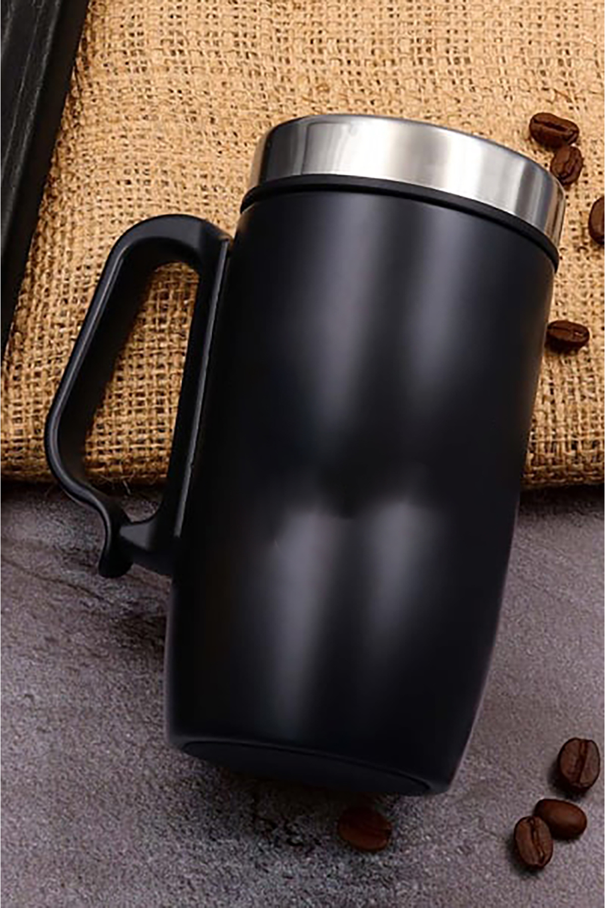 280 ML Kulplu Siyah Çelik Termos *Termos bardağın dış yüzeyinin tamamı metal malzemedir.