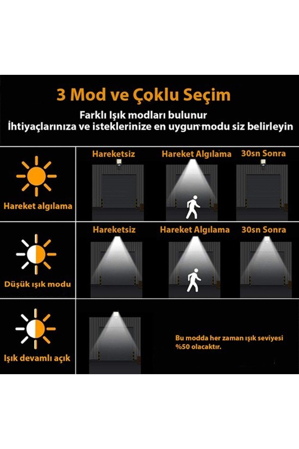 Solar LED Bahçe Sokak Lambası Hareket Sensörlü Kumandalı 3 Modlu Güneş Enerjili 1.