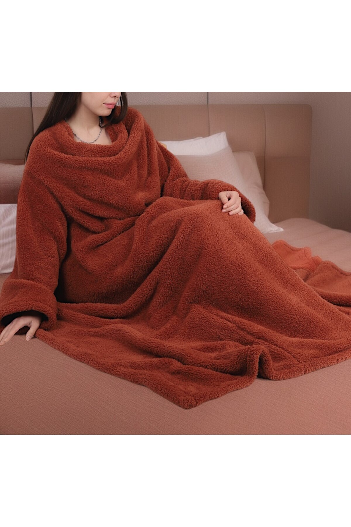 Kiremit Rengi Wellsoft Rahat Giyilebilir Kollu Uzun TV Battaniyesi Tek Kişilik Battaniye Kolay Katlanır Köşe Yastığı Olabilir Ayaklarınızı Isıtmak İçin Ayak Kısmı Cepli Kiremit rengi wellsoft kumaştan üretilmiştir.