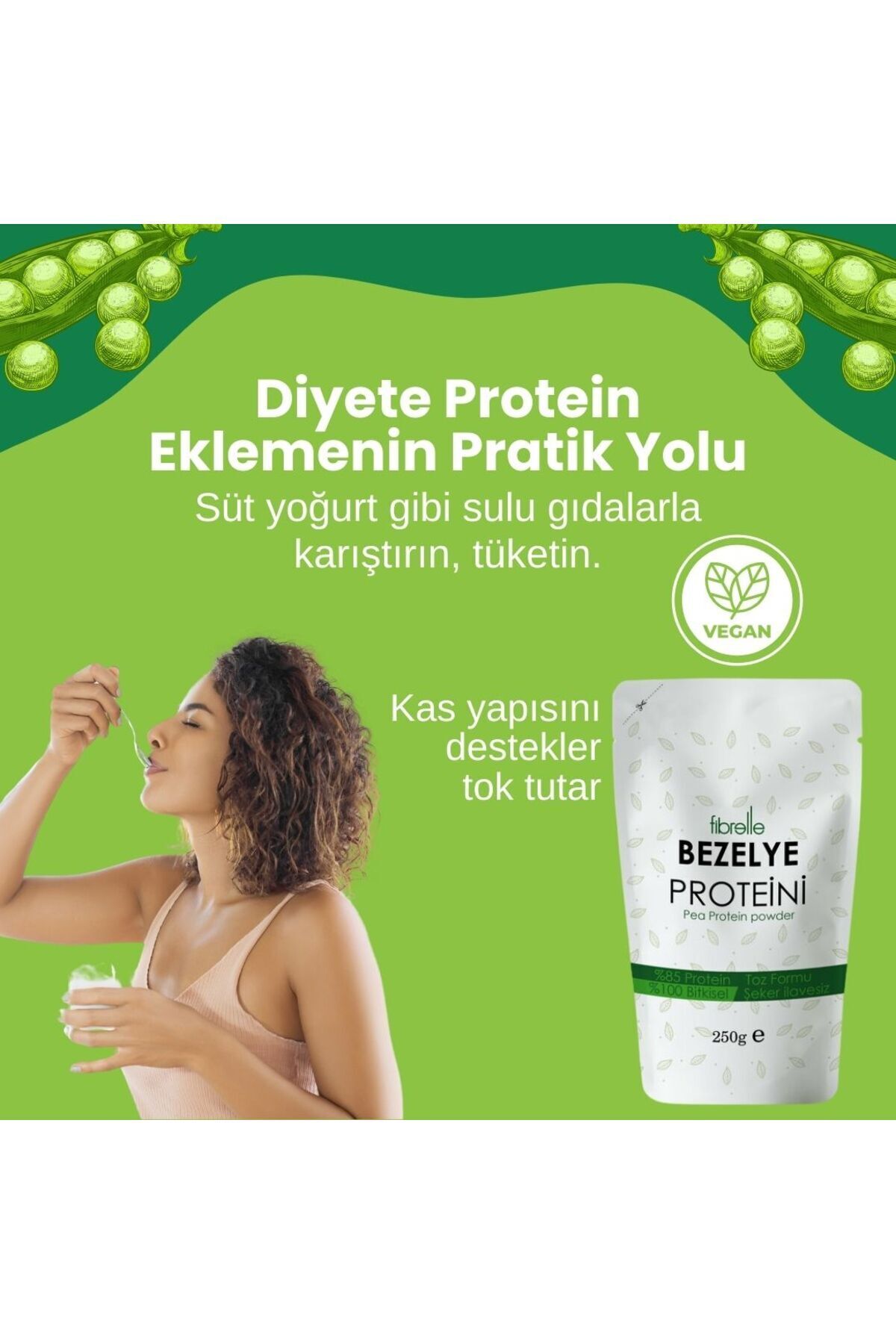 kurutulmuş olan sarı bezelyelerden lif ve nişastaiçeriğinin çıkartılarak kalan kısmın ince toz haline getirilmesi ile eldeedilir. Bezelye proteini yüksek protein içeren bitkisel bitkisel birproteindir. Bezelye proteininin faydaları nelerdir? Kas gelişiminidestekler: Bezelye proteini,kasların yapı taşını oluşturan amino asitler açısından zengindir. Bu sayede,kasların onarımı ve büyümesini destekler. Vegan , vejetaryen ve sporcular içinideal bir protein kaynağıdır bağışıklık sisteminigüçlendirir: Bezelye proteini, bağışıklık sisteminin önemli bir bileşeniolan glutamin amino asidini içerir. Glutamin, bağışıklık hücrelerinin işlevinidesteklemeye yardımcı olur. Diyete proteineklemenin kolay bir yoludur: Bezelye proteini tozu, diyete kolayca protein eklemeninharika bir yoludur. Hızlı ve kolay bir şekilde tüketilebilir ve lezzetliçeşitli içeceklere eklenebilir. Uzun süre tok tutmaözelliğine sahiptir: Bezelye protein tozunu diyet listesinde kullanarak . Bezelye proteini tozunasıl kullanılır? Süt, su veya meyve suyu ile karıştırarak içilebilinir.Ayrıca, smoothie'lere, yoğurda veya müsliye eklenebilir. Çorbalara eklenebilir.Evde yapılan hamur işlerine eklenerek kek, pankek ve muffinlerin protein oranıarttırılabilinir.15-20 g kadar ilave edilip alınan gıdanın protein oranı kilove ihtiyaca göre arttırılabilinir.