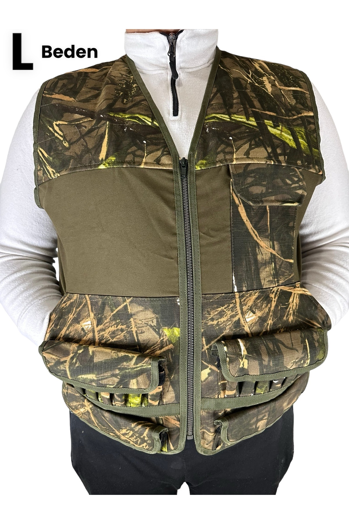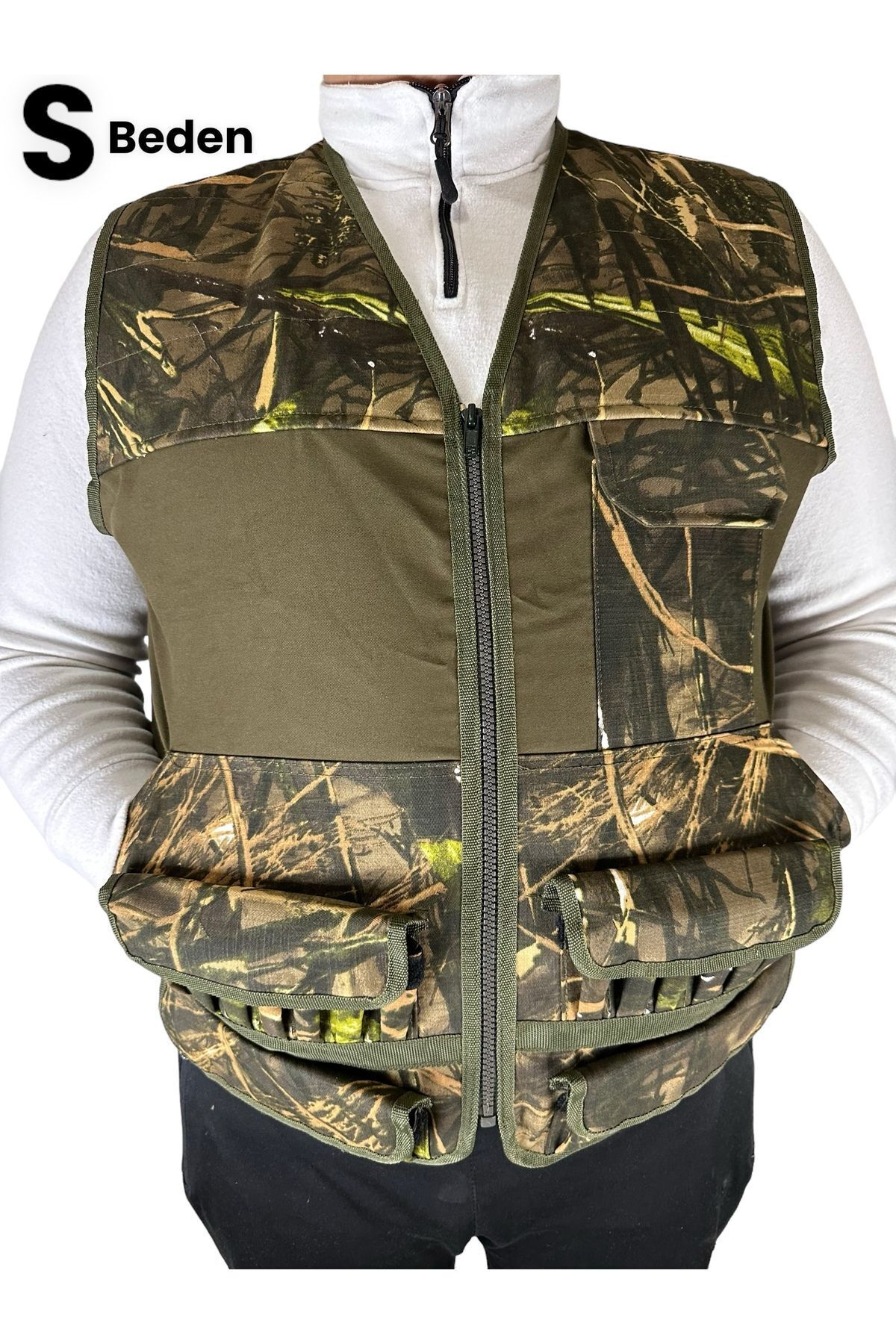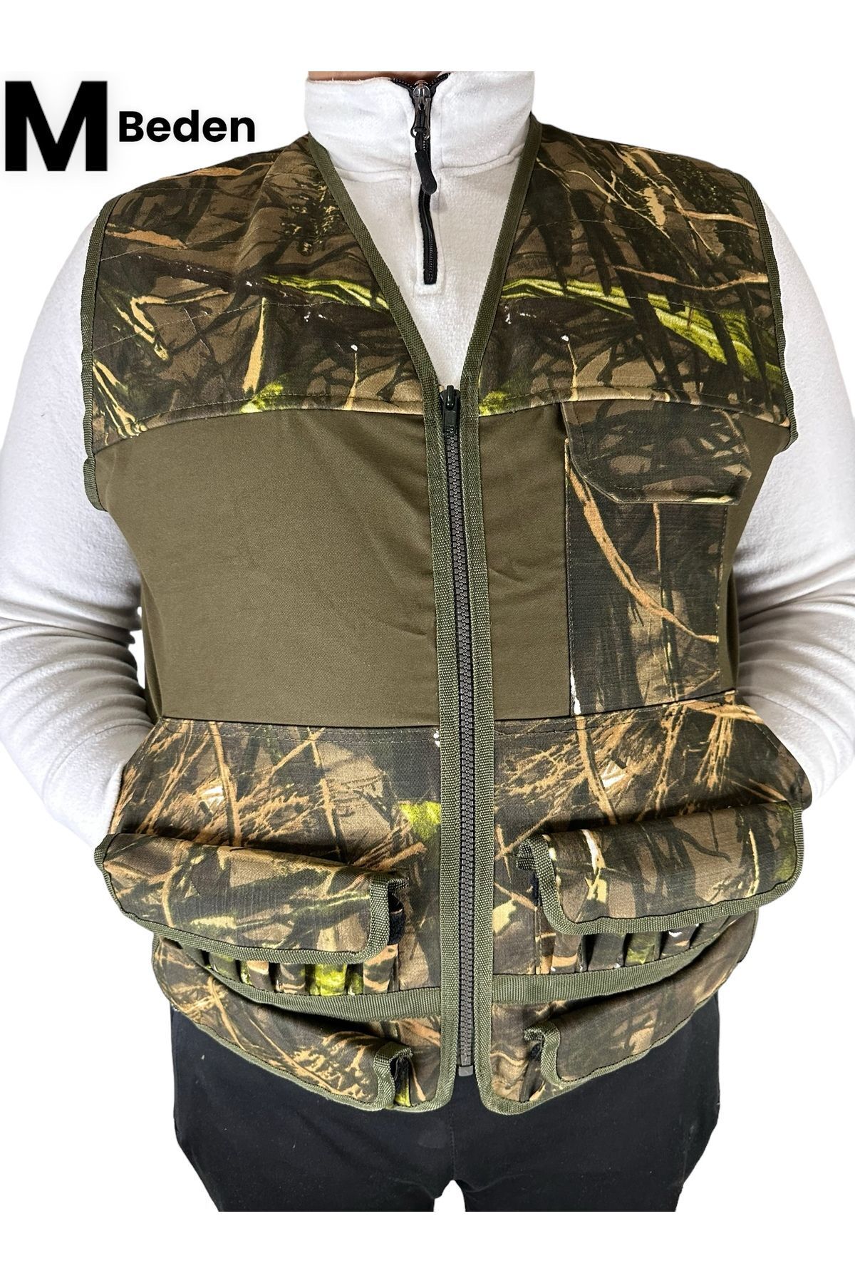 Avcı Yeleği - 30 Fişek Kapasiteli - Haki üzerine Yeşil Ağaç Desen Kumaş ---> S - M - L - XL bedenlerimiz bulunmaktadır.