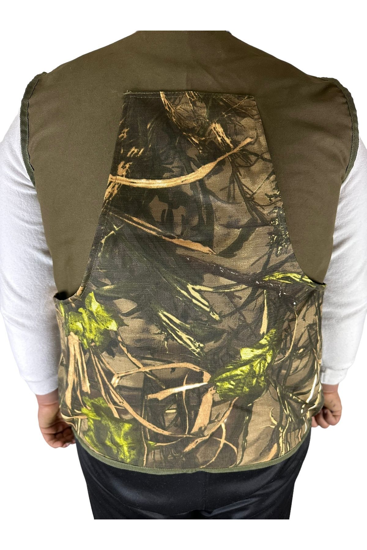 S Beden Avcı Yeleği - 30 Fişek Kapasiteli - Haki üzerine Yeşil Ağaç Desen Kumaş