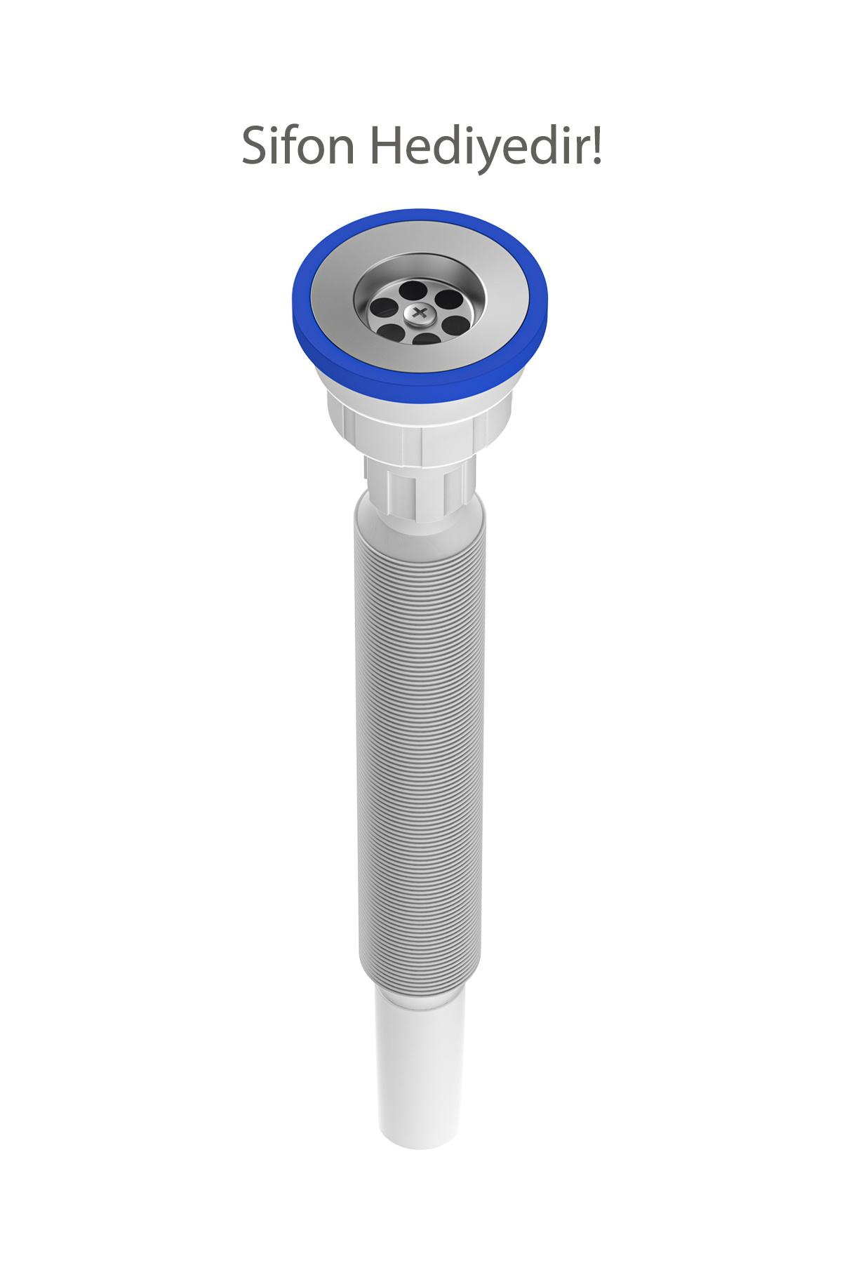 Roomart BT103 Siyah Banyo Bataryası , Sifon Hediyeli Lavabo Bataryası Çift Su Girişli Aç Kapa Musluk Çeşme 5 Yıl Garantili