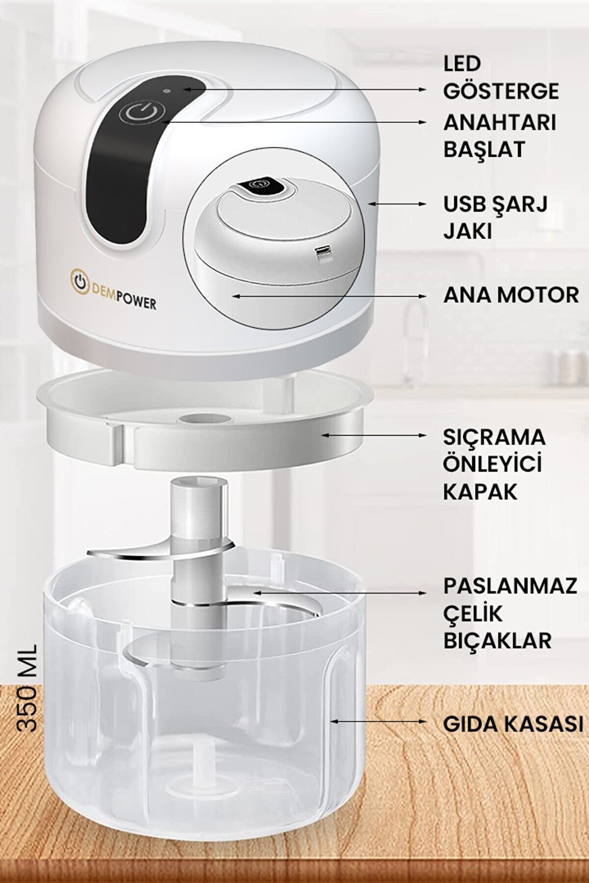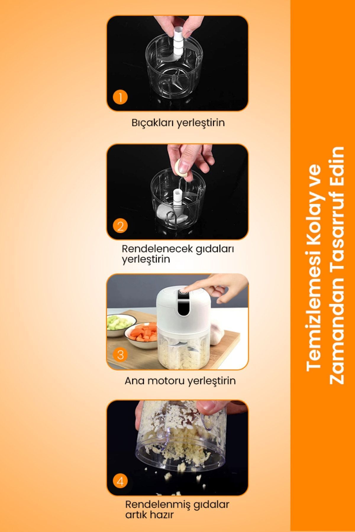 Şarjlı 3 Bıçaklı Pratik Mini El Rondosu 250ml