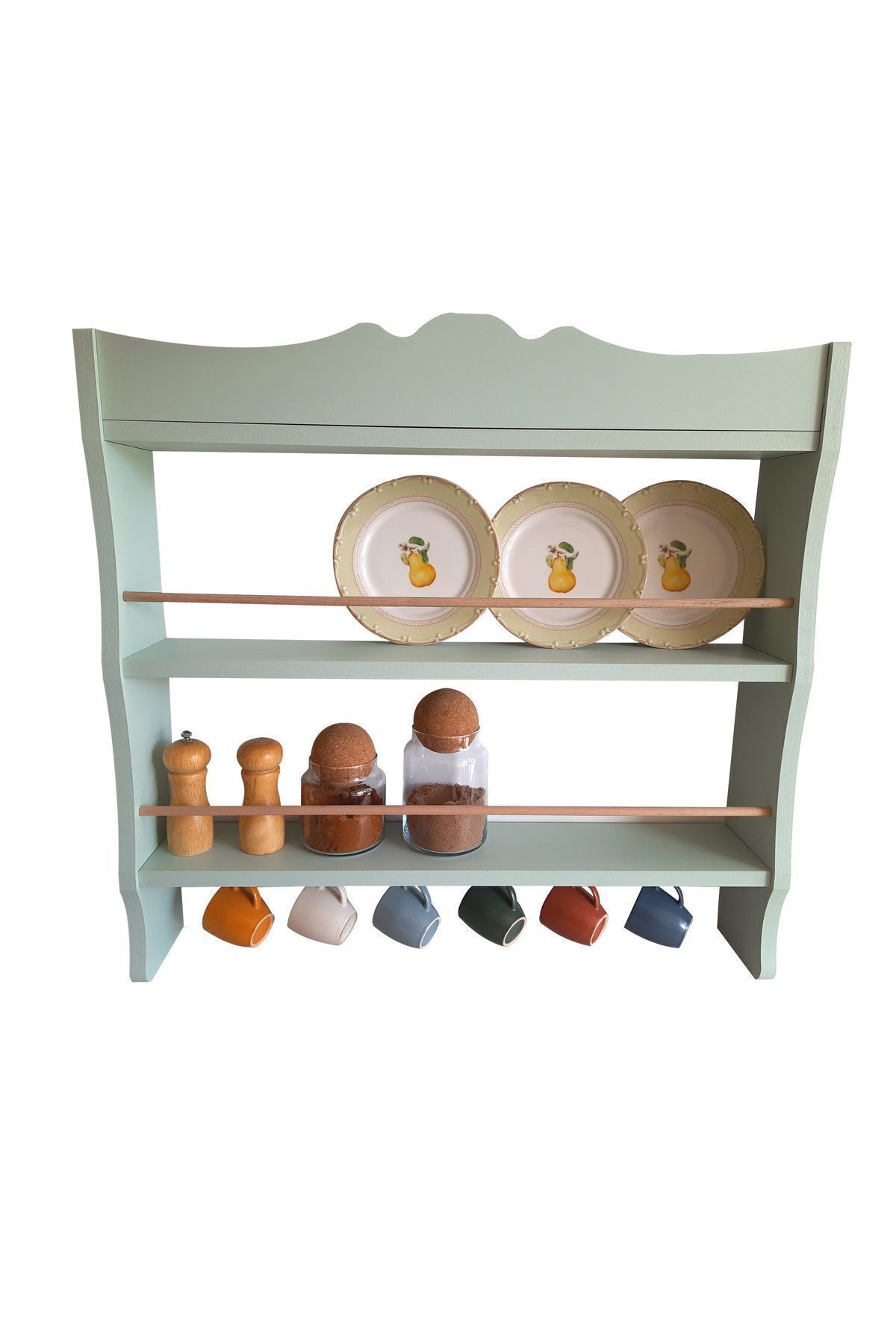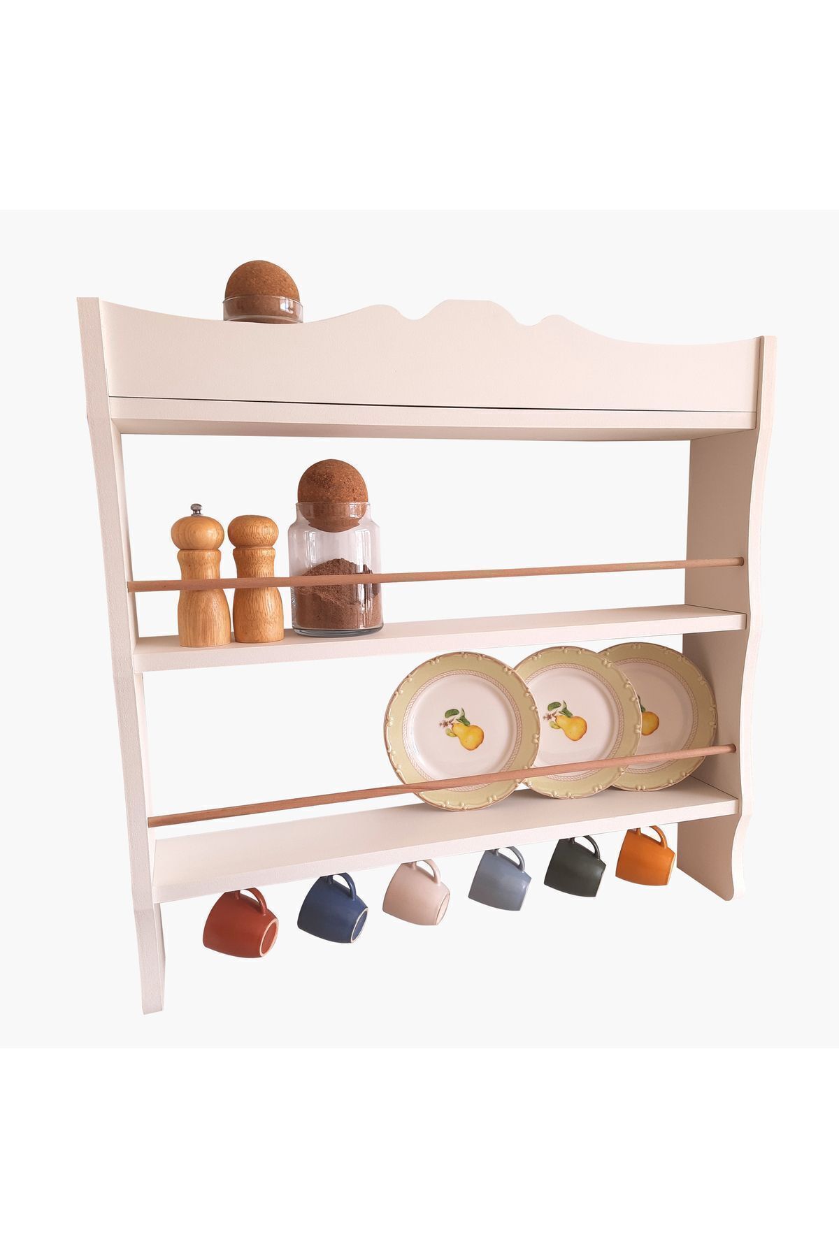 Modern tasarımı ile mutfaklarınıza şıklık katan tereği rafları, duvar veya tezgah üstü montaj kolaylığı sağlar