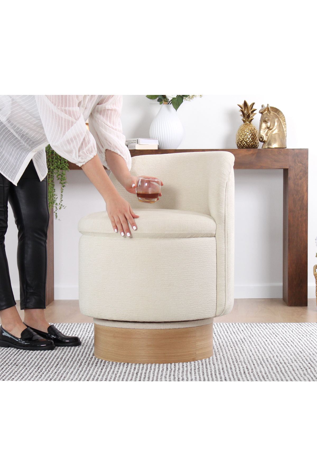 Ayak: Meşe, doğal ahşap görünümü korunarak naturel vernik uygulanmıştır.