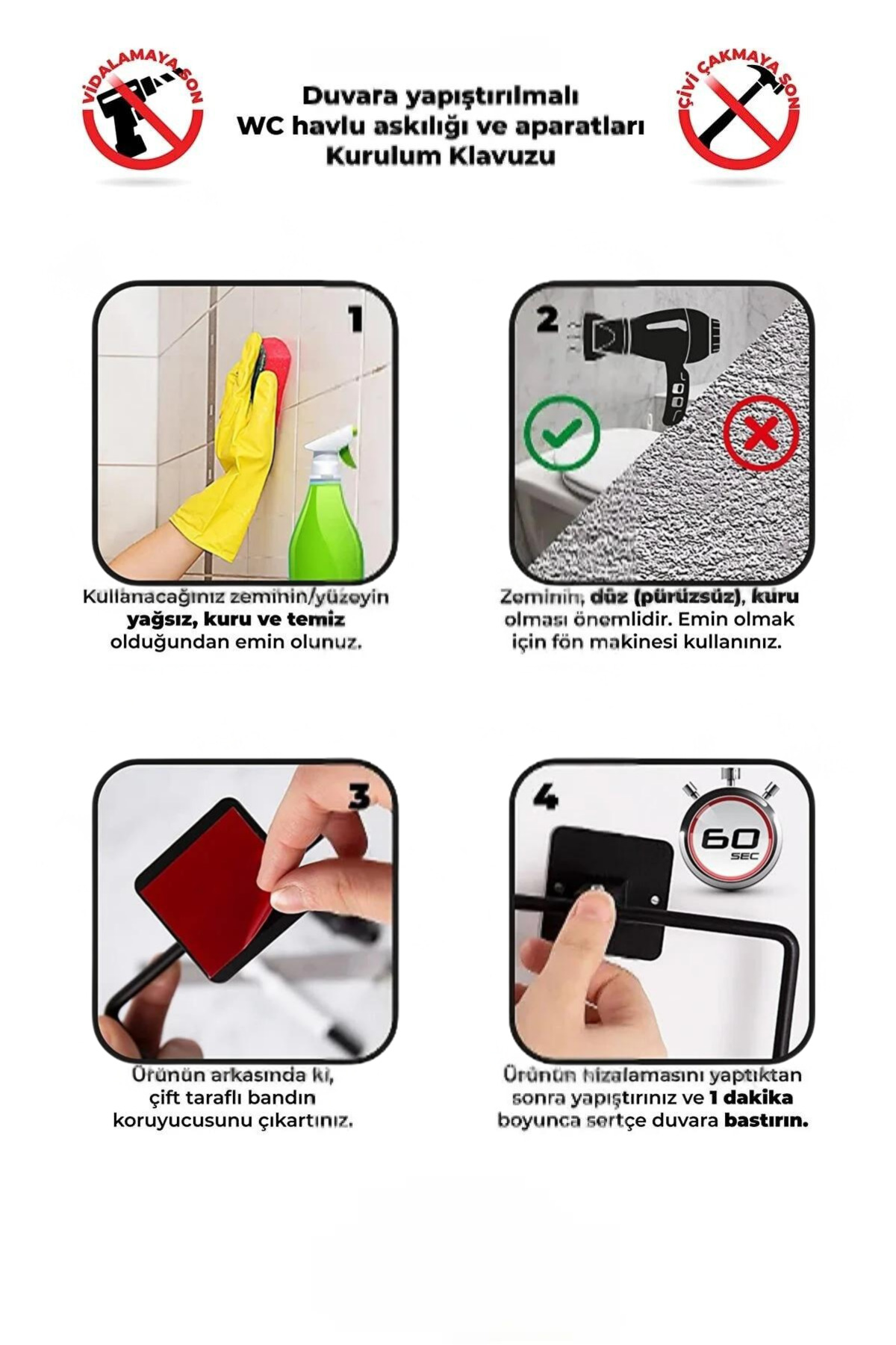 Düz parlak duvarları fayansları delmeden banyonuzu daha düzenli hale getirir, güzellik katar.