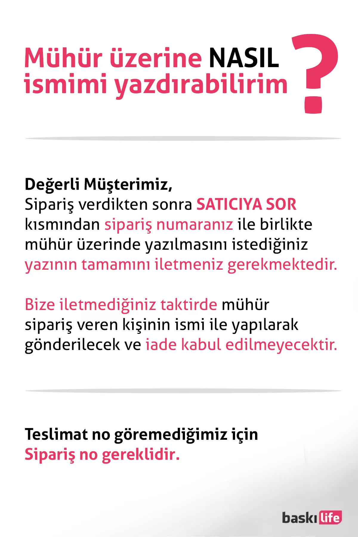 * Mühür üzerine yazılacak yazıyı SİPARİŞ KODU İLE BİRLİKTE satıcıya soru sor kısmından belirtiniz.