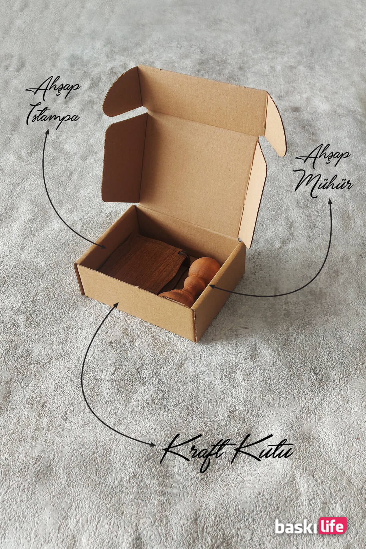 PAKET İÇERİĞİ : Baskı Life ’a özel Ahşap kutu, Kraft Kutu, 1 adet ahşap saplı mühür (4x4 cm)