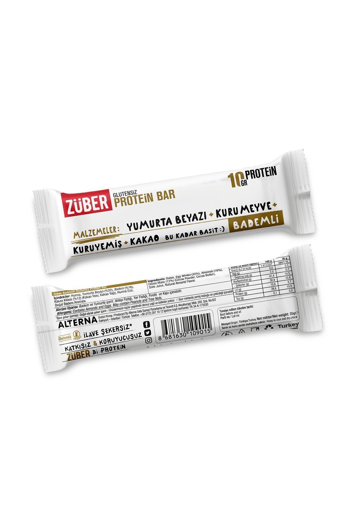 Paket içerisinde 3 adet Züber Protein Bar Bademli 40g bulunmaktadır.