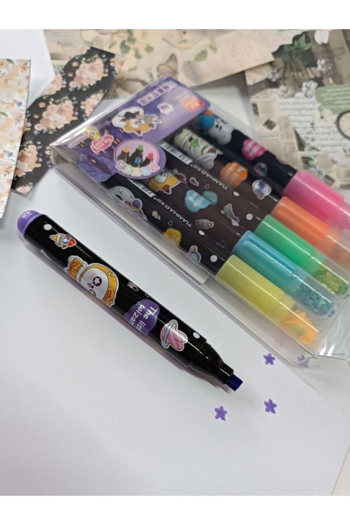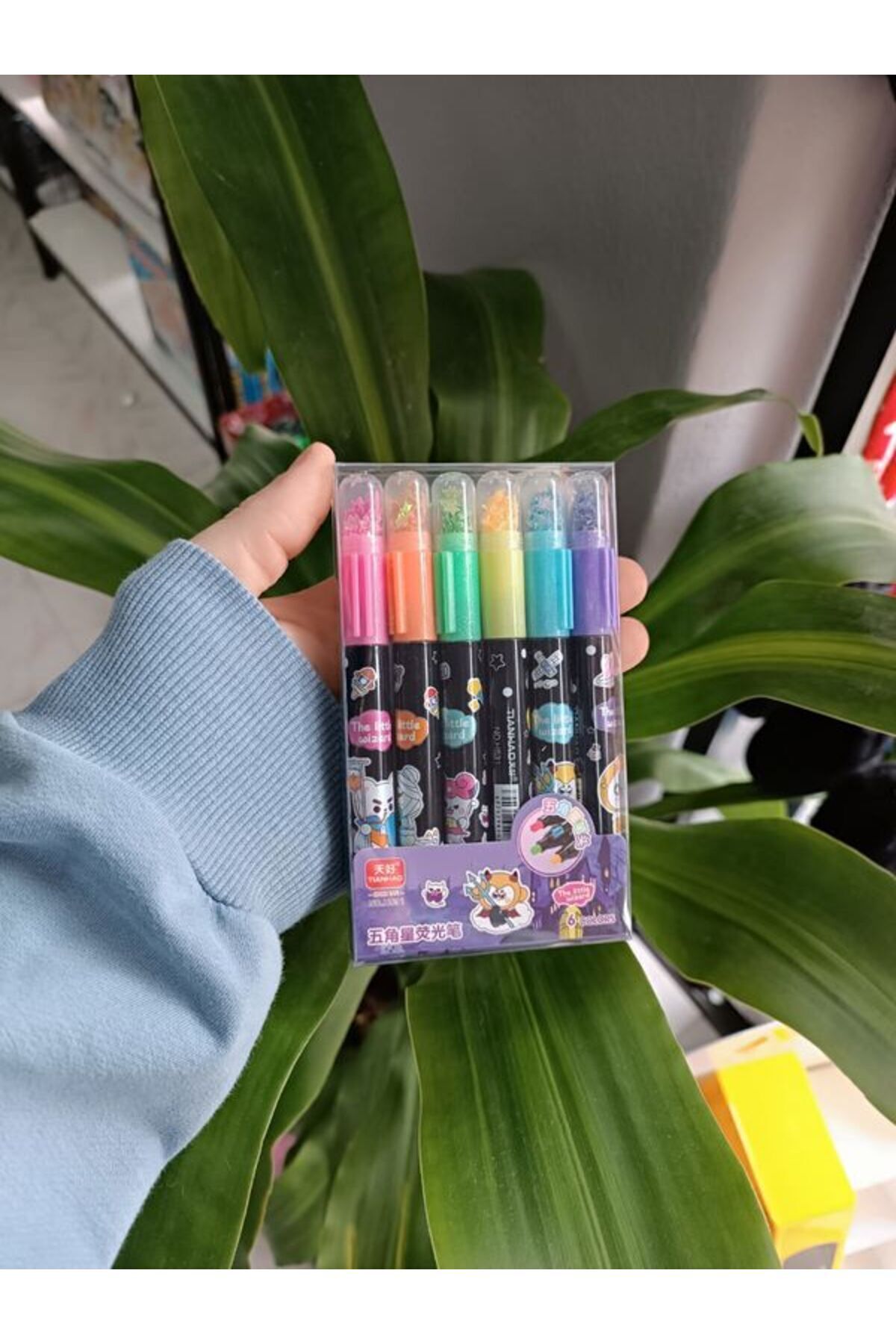 Yıldız Baskılı Pullu Damga Fosforlu Sihirbaz Kalem 6lı