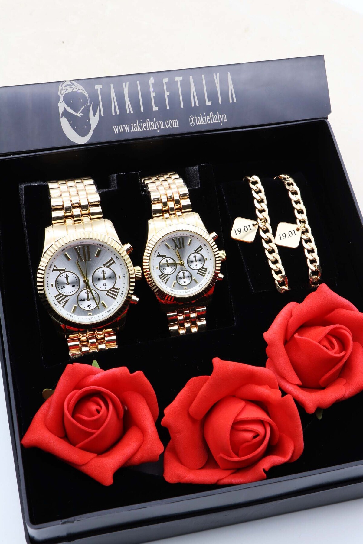 Zarif gri kasa rengiyle dikkat çeken bu çift kol saati, şıklığınızı tamamlar