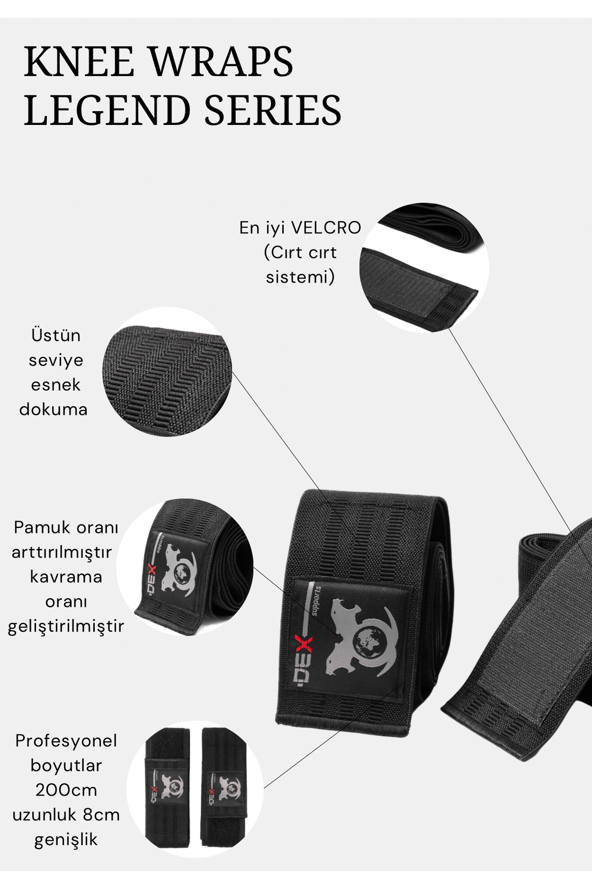 Şimdiye kadar denediğiniz en iyi dizbandajları Dex Supports Legend Knee Wraps! Ayak gücünü , desteğini ve kararlığınıarttırın
