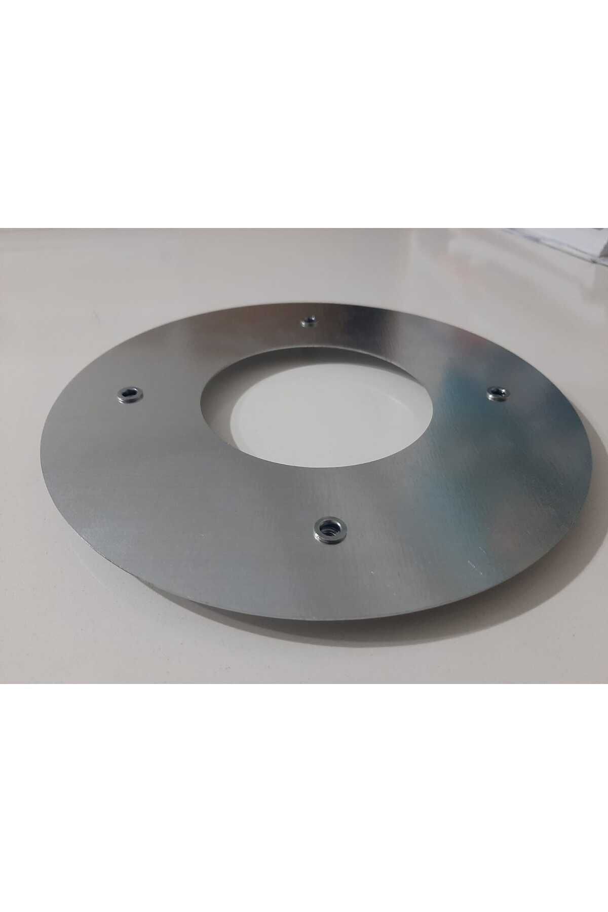 Kamp çadırı soba çıkış flanşı, kendinden 4 adet somun bağlantılı, 1 mm sacdan imal edilmiştir.