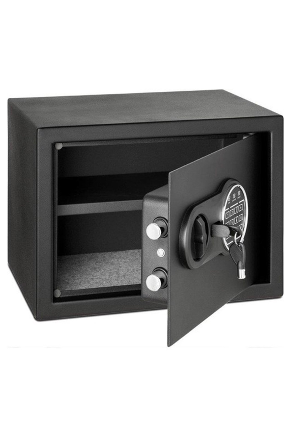 Yükseklik: 23,5 cm Genişlik: 34 cm Derinlik: 17 cm Ağırlık: 8,5 kg Bireysel kullanıma uygun 3-8 basamaklı sabit şifre ile kullanılır Pil bitmesi durumunda veya şifre unutulması durumunda mekanik anahtarla açılır Kapak sac kalınlığı 4 mm Gövde sac kalınlığı 1,5 mm Duvara ve/veya zemine çelik dübel vida ile montaj imkânı Selonoid kilitleme sistemi Elektrostatik toz boya 4*1,5V pil kullanımı 2 yıl garanti kapsamı