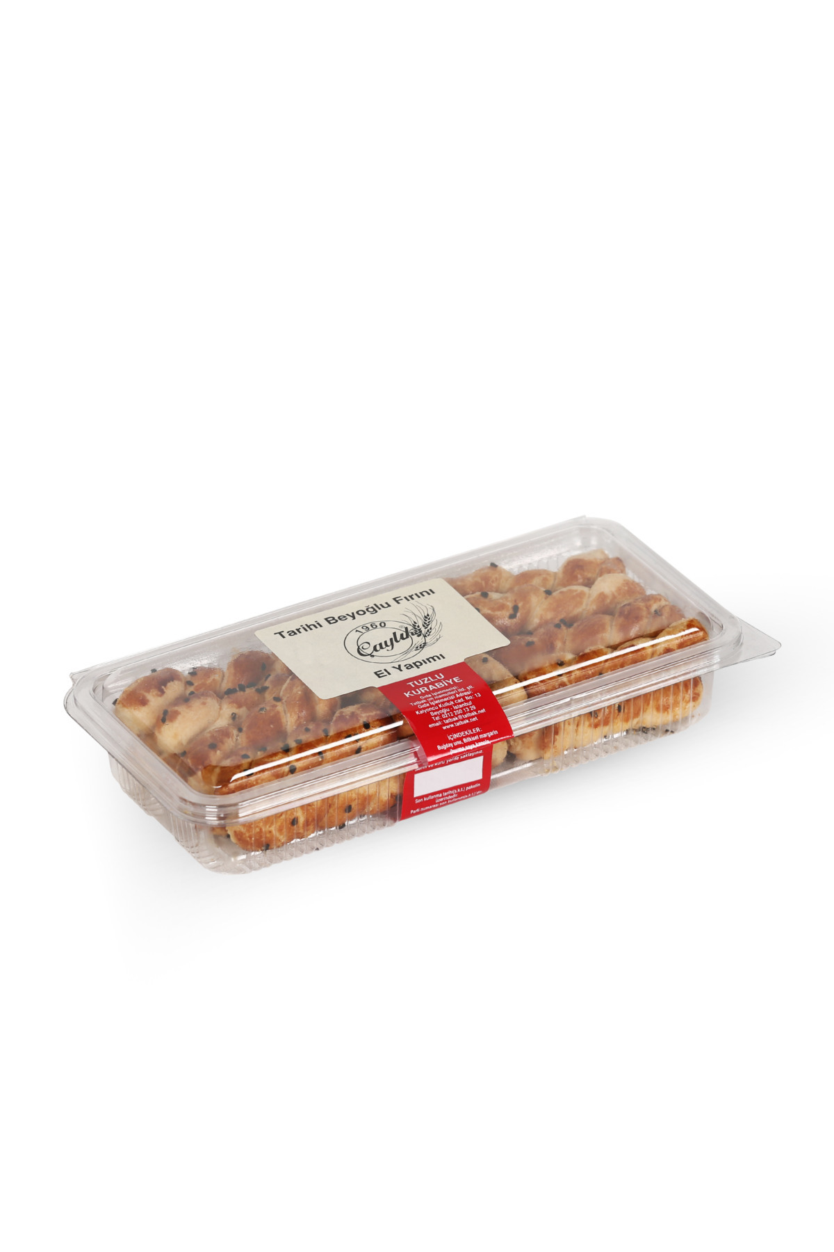 Marka: Tarihi Beyoğlu Fırını İçindekiler: Buğday unu, bitkisel sıvı yağ (ayçiçek), bitkisel margarin (hurma, soya, kanola, pamuk, ayçiçek yağı) yumurta, tuz, su, çörekotu.
