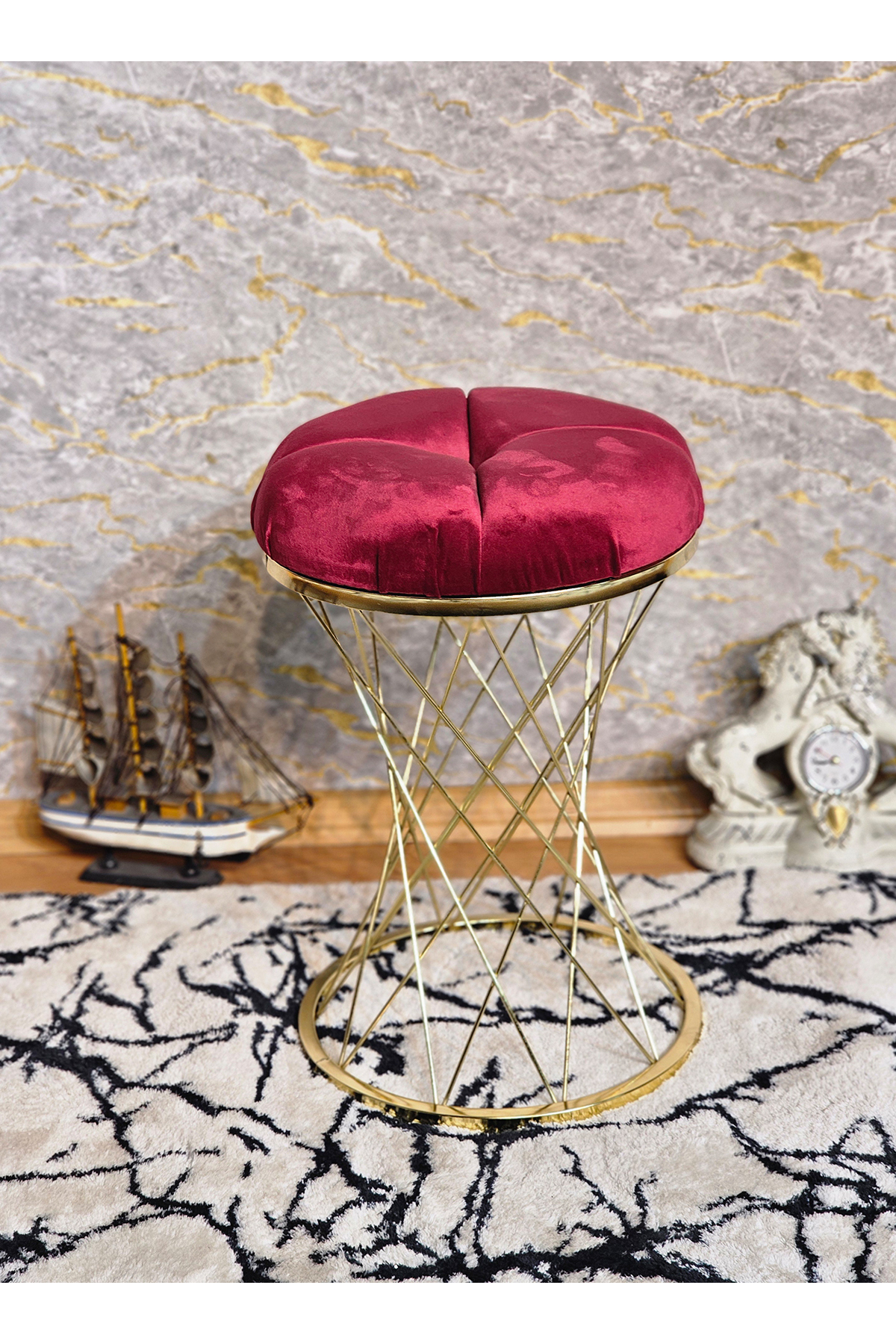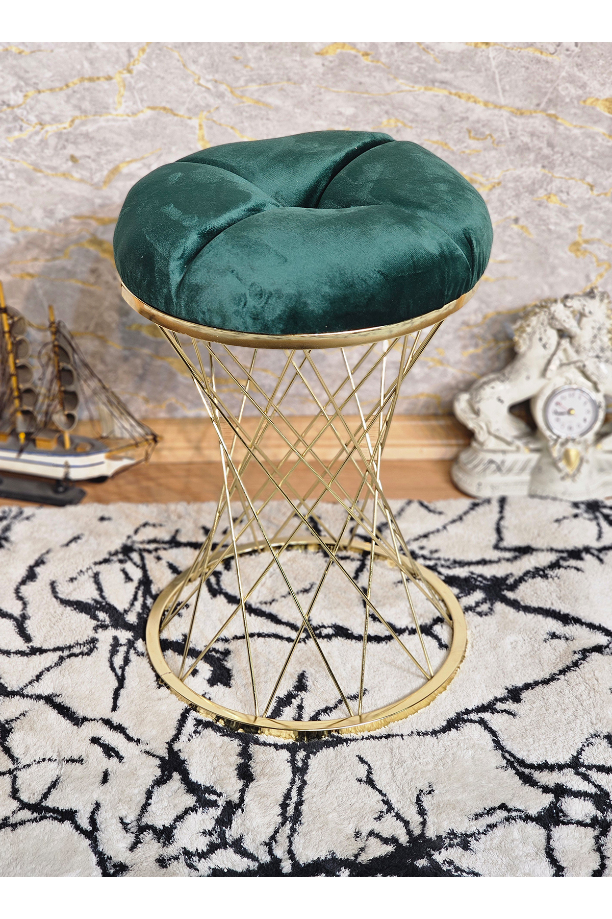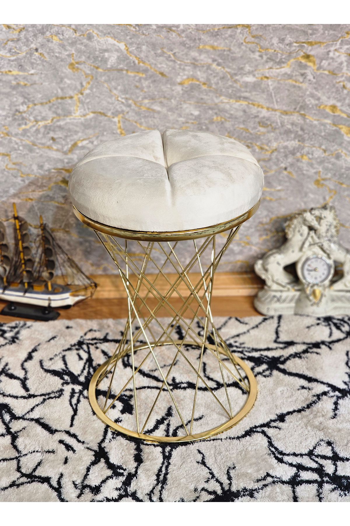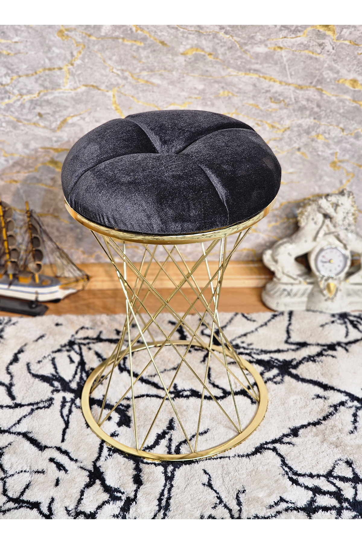 Modern ve klasik tasarımıyla her mekâna uyum sağlayan yuvarlak gold kaplama siyah puf, şıklığı ve konforu bir arada sunar