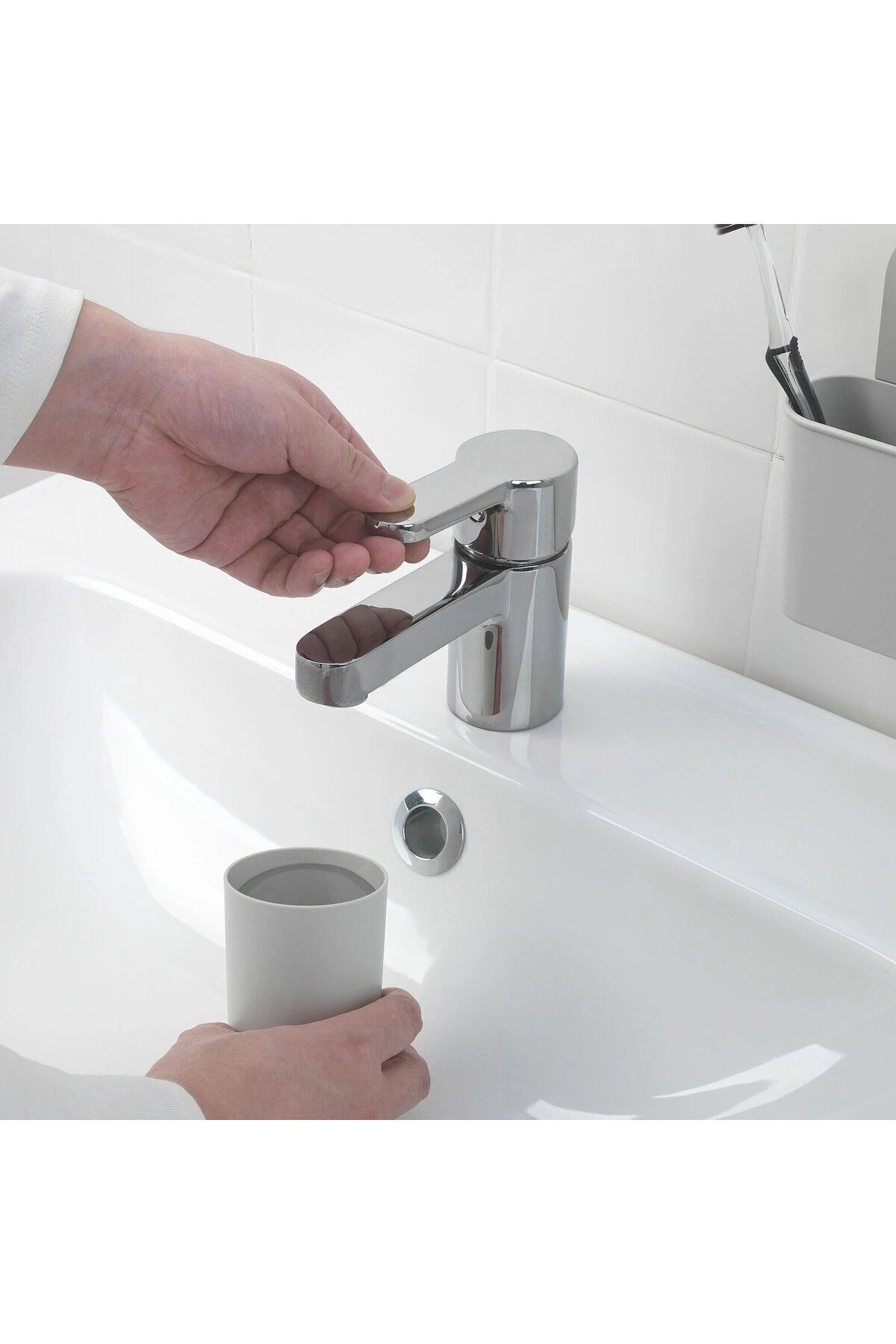 Lavabo veya tezgahta kısıtlı alana sahip olanlar için ideal bir çözüm.