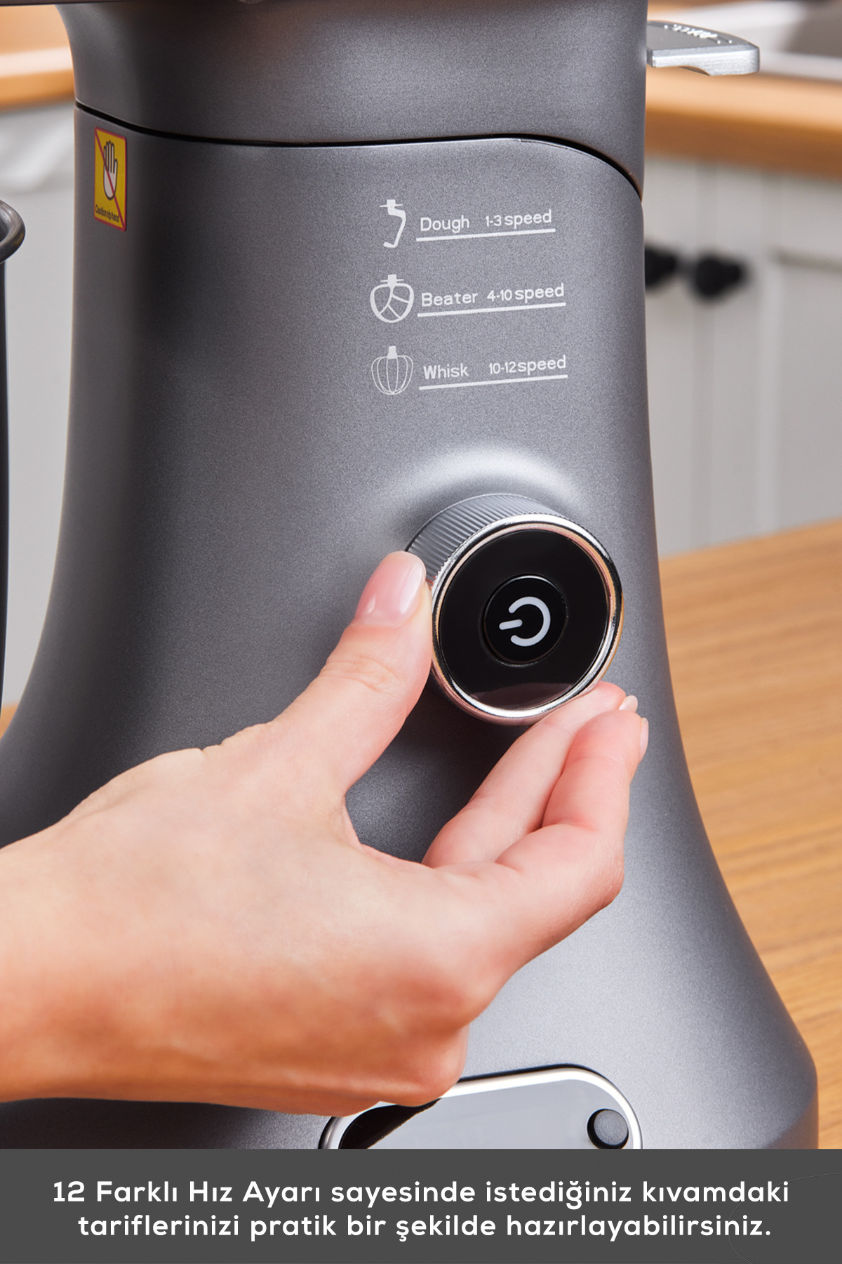 12 Farklı Hız Kademesi 12 Farklı Hız Ayarı sayesinde istediğiniz kıvamdaki tariflerinizi pratik bir şekilde hazırlayabilirsiniz.