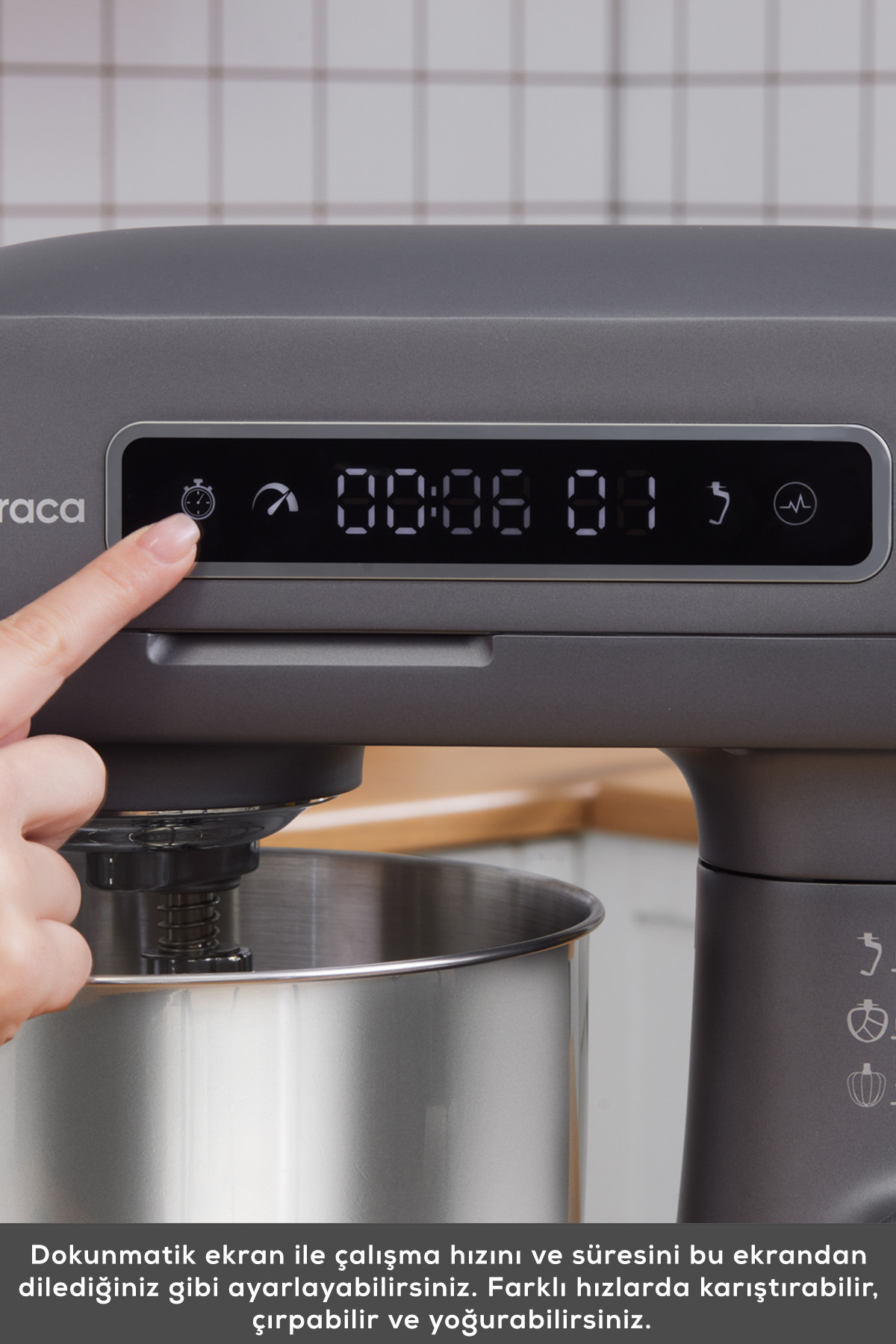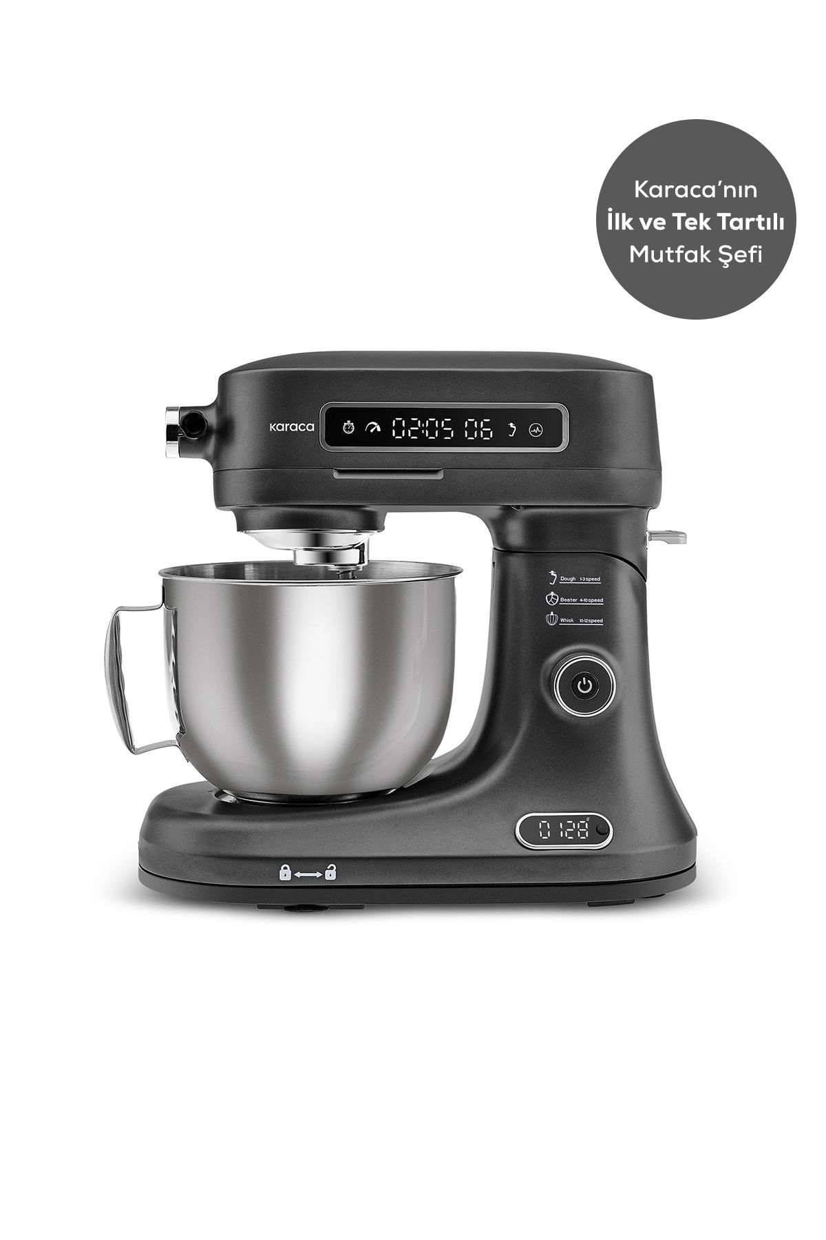 Ürün Özellikleri KARACA PRO ARTISAN ZAMAN AYARLI & TARTILI DÖKÜM MUTFAK ŞEFİ 1600 W yüksek gücü ve sahip olduğu 3 farklı aparatı ile çok hızlı bir şekilde kusursuz çırpma karıştırma ve yoğurma yapabilirsiniz.