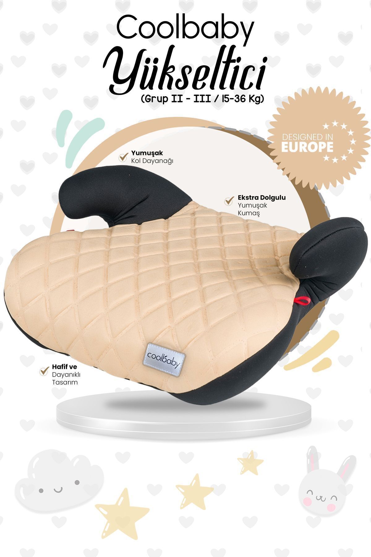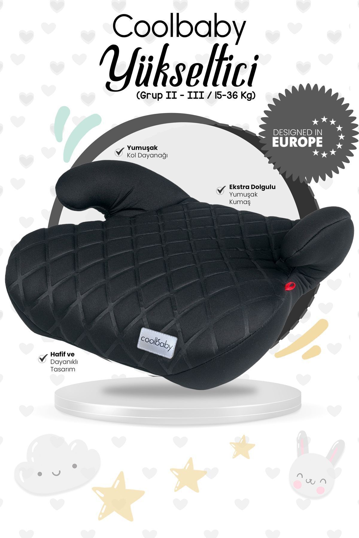 • Daha keyifli bir seyahat deneyimi yaşatan oto koltuğu yükseltici, birçok araba modeline kolaylıkla uyum sağlar.