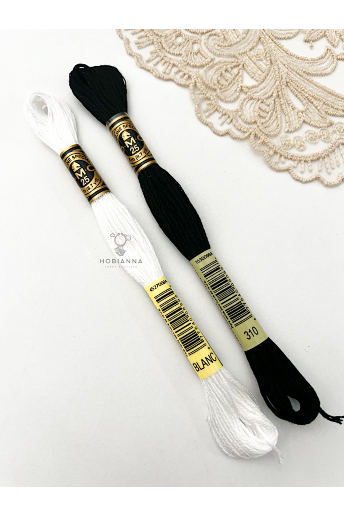 DMC Orijinal muline (nakış ve kanaviçe ipliği), 2 adet - no:Blanc (kırık beyaz) ve 310 (siyah). %100 merserize pamuklu