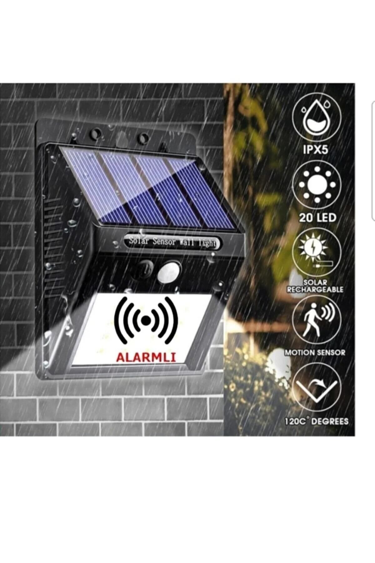 Hareket sensörlü güneş enerjili alarm pır sensörlü 20 ledli solar lamba