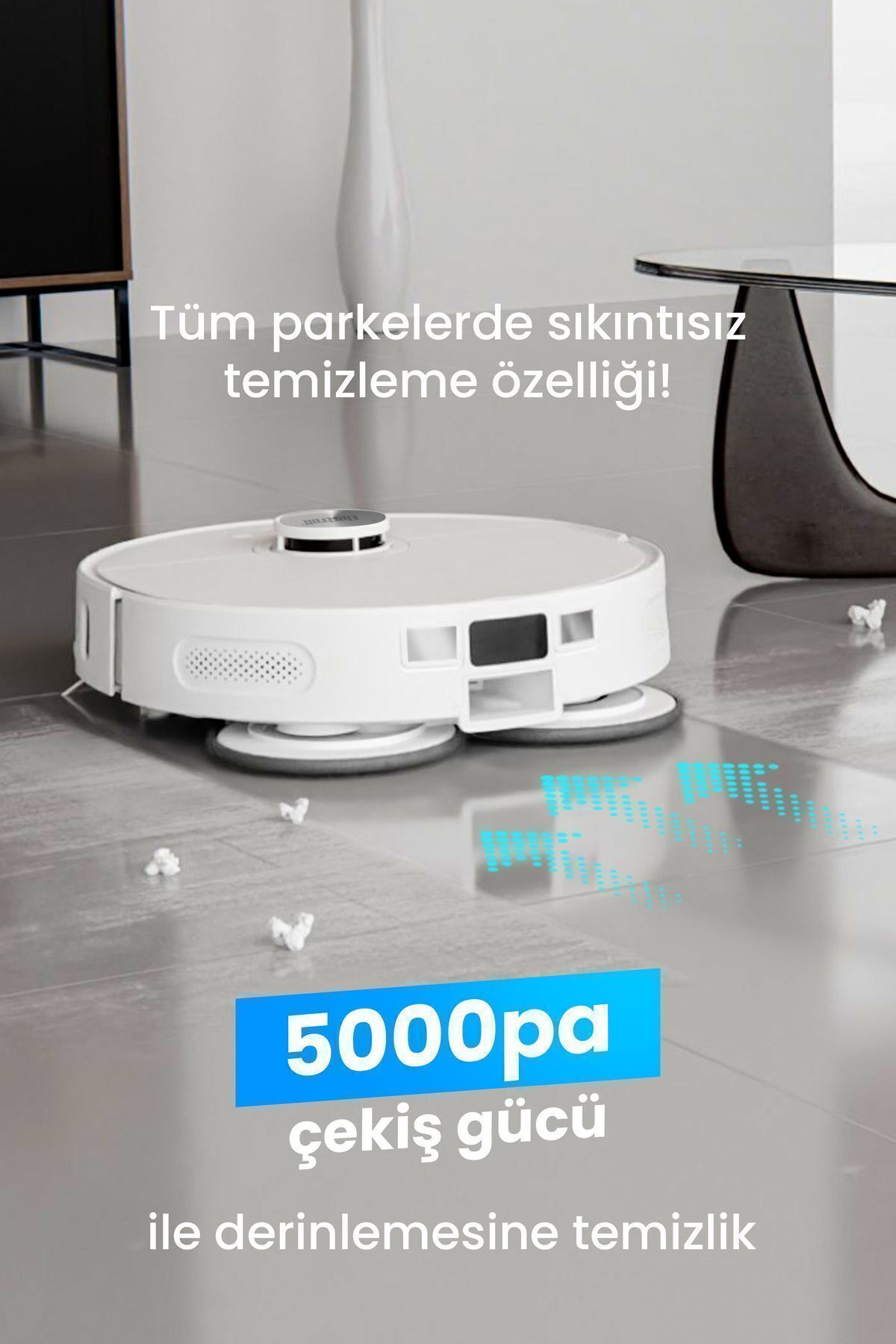 Lazer (LIDAR + SLAM) haritalandırma teknolojisi sayesinde evinizi akıllıca tarayarak en etkili temizlik rotasını belirler