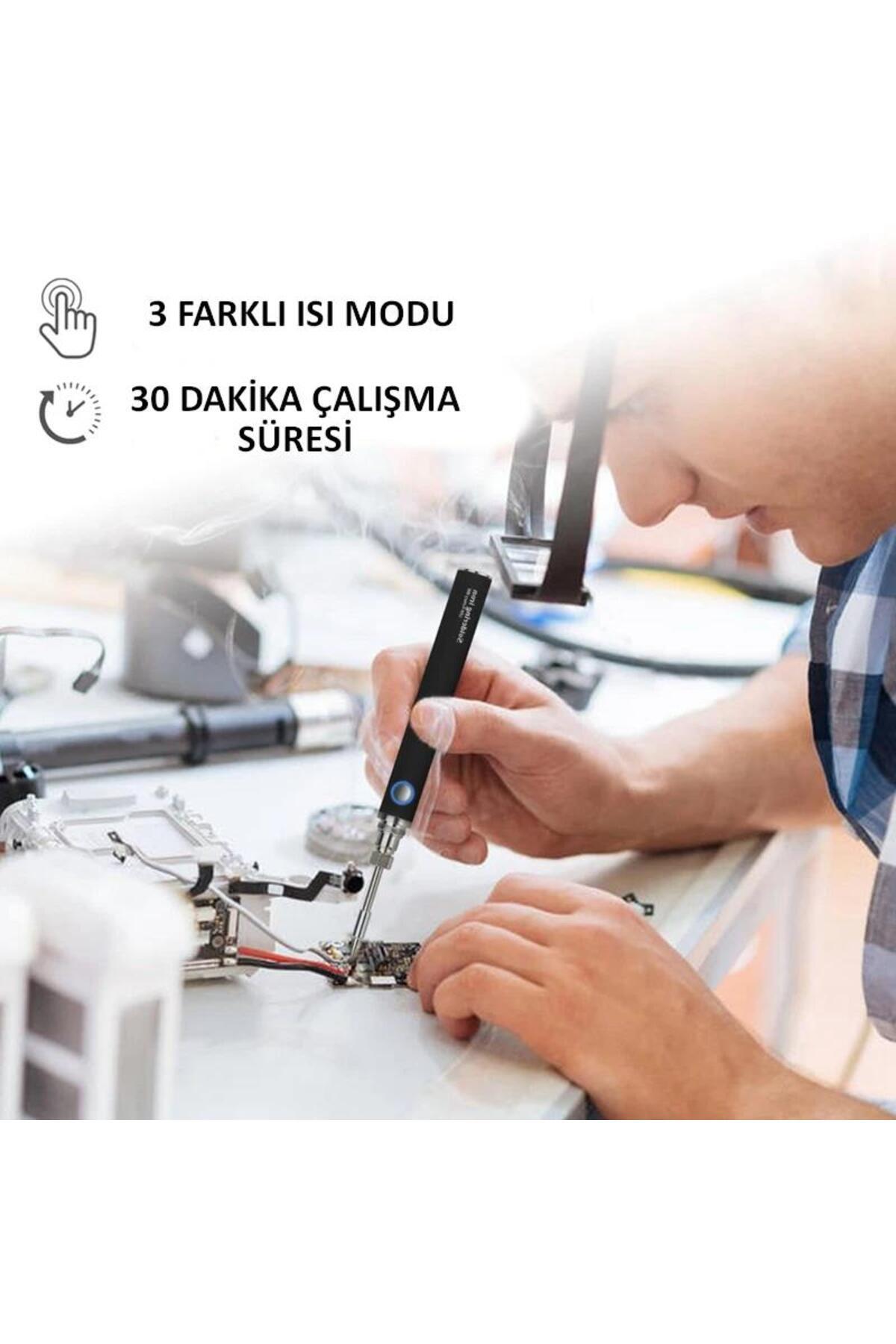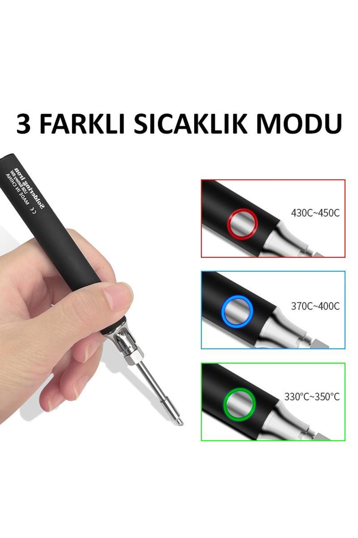 Üç ayarlanabilir mod ile çalışan gösterge ışıkları:Kırmızı ışık: 430 ℃ ~ 450 ℃ (Tam şarj yaklaşık 10 dakika süreyle kullanılabilir)Mavi ışık: 370 ℃ ~ 400 ℃ (Tam şarj yaklaşık 20 dakika süreyle kullanılabilir)Yeşil ışık: 330 ℃ ~ 350 ℃ (Tam şarj yaklaşık 30 dakika süreyle kullanılabilir) Paket İçeriği:1x USB Kablosuz USB Lehim Makinası1x USB Şarj Kablosu (type-C)1x Süngerli Lehim Makinası Standı1x Lehim Teli Teknik ÖzelliklerGüç: 8-10WÜrün ağırlığı: 20gErime Süresi: <15SOtomatik Uyku Süresi: 10 dakikaBoyut: 150*14mm / 5.9*0.55inAna malzeme: Paslanmaz çelikSıcaklık (ayarlanabilir): 330-450°C