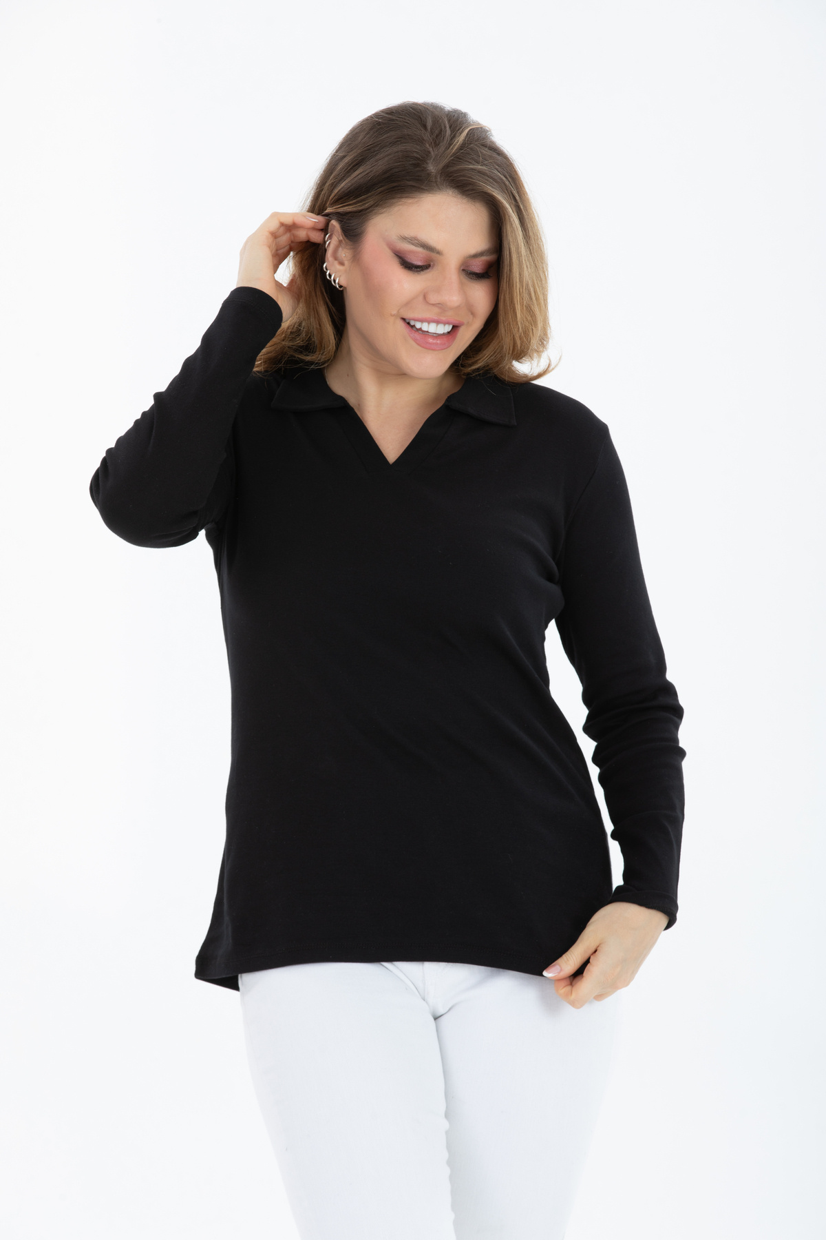 Curve Büyük Beden Pamuklu Likralı V Yaka Basic Bluz