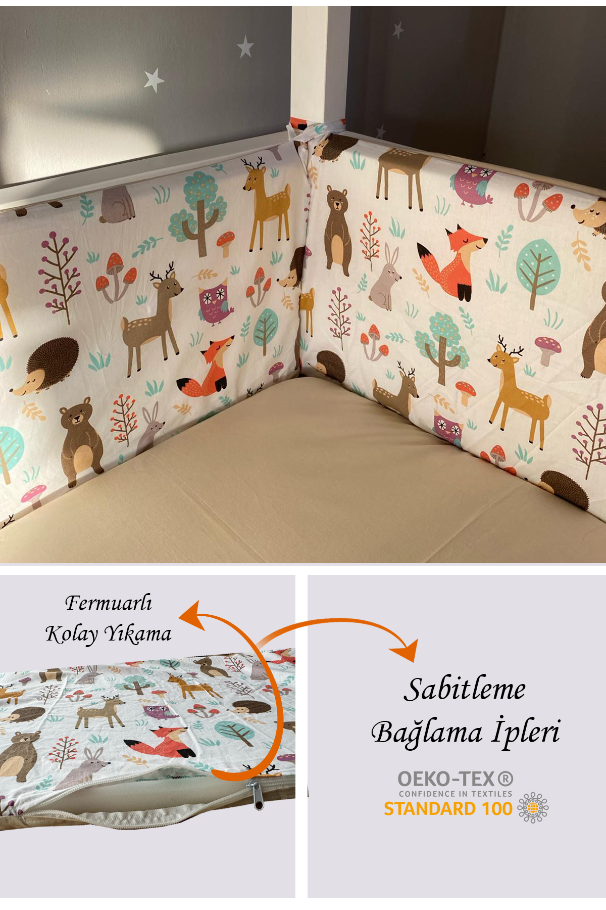 Orman Desenli 70x140cm Beşik Kenar Koruma 4 Parça Beşik Bariyer Montessori Koruyucu Özel Üretim