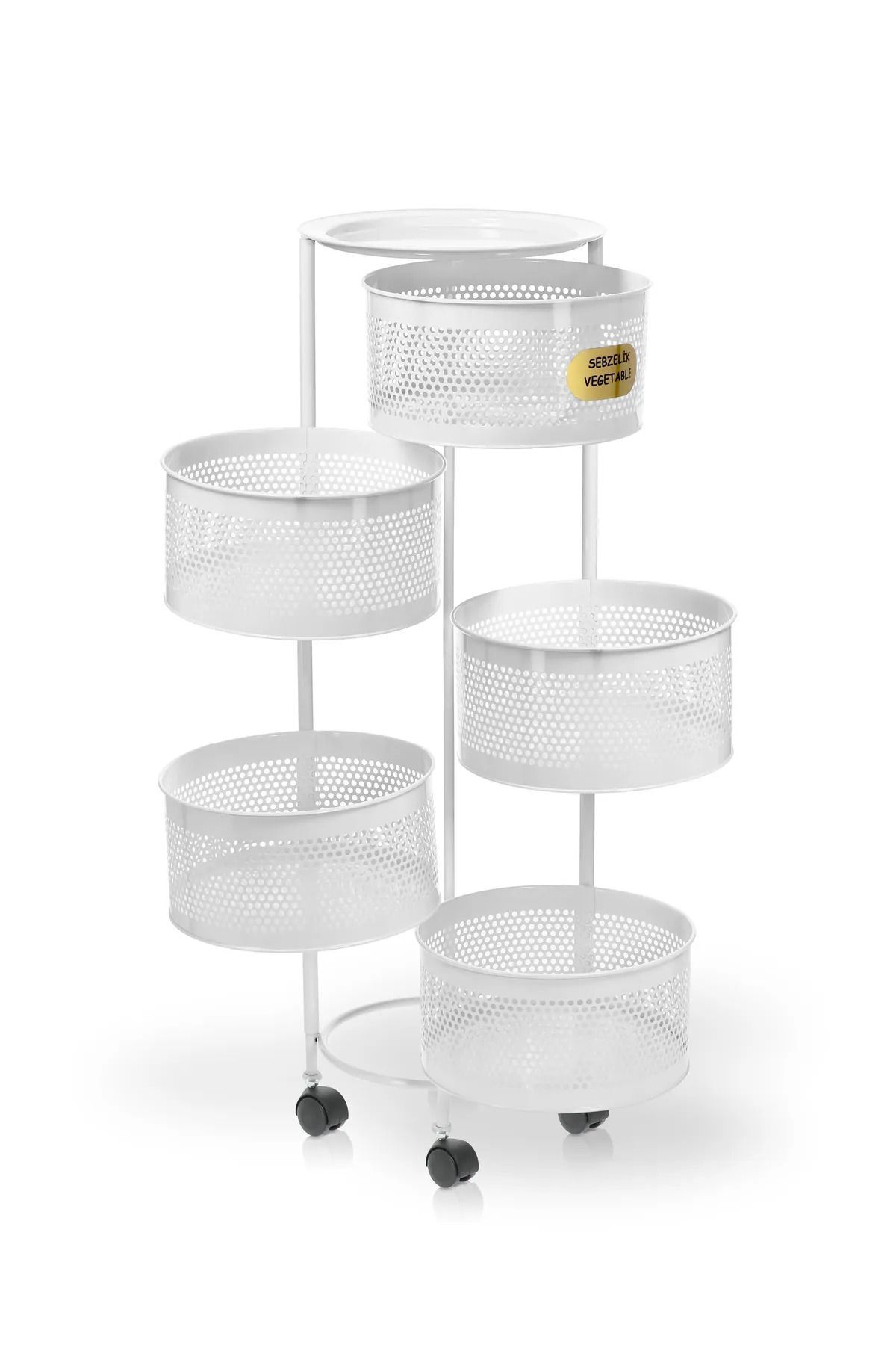 Bayev 5 Katlı Yana Açılır Beyaz Tekerlekli Patates Soğan Sepeti Sebze Meyve Sepeti Sebzelik:
