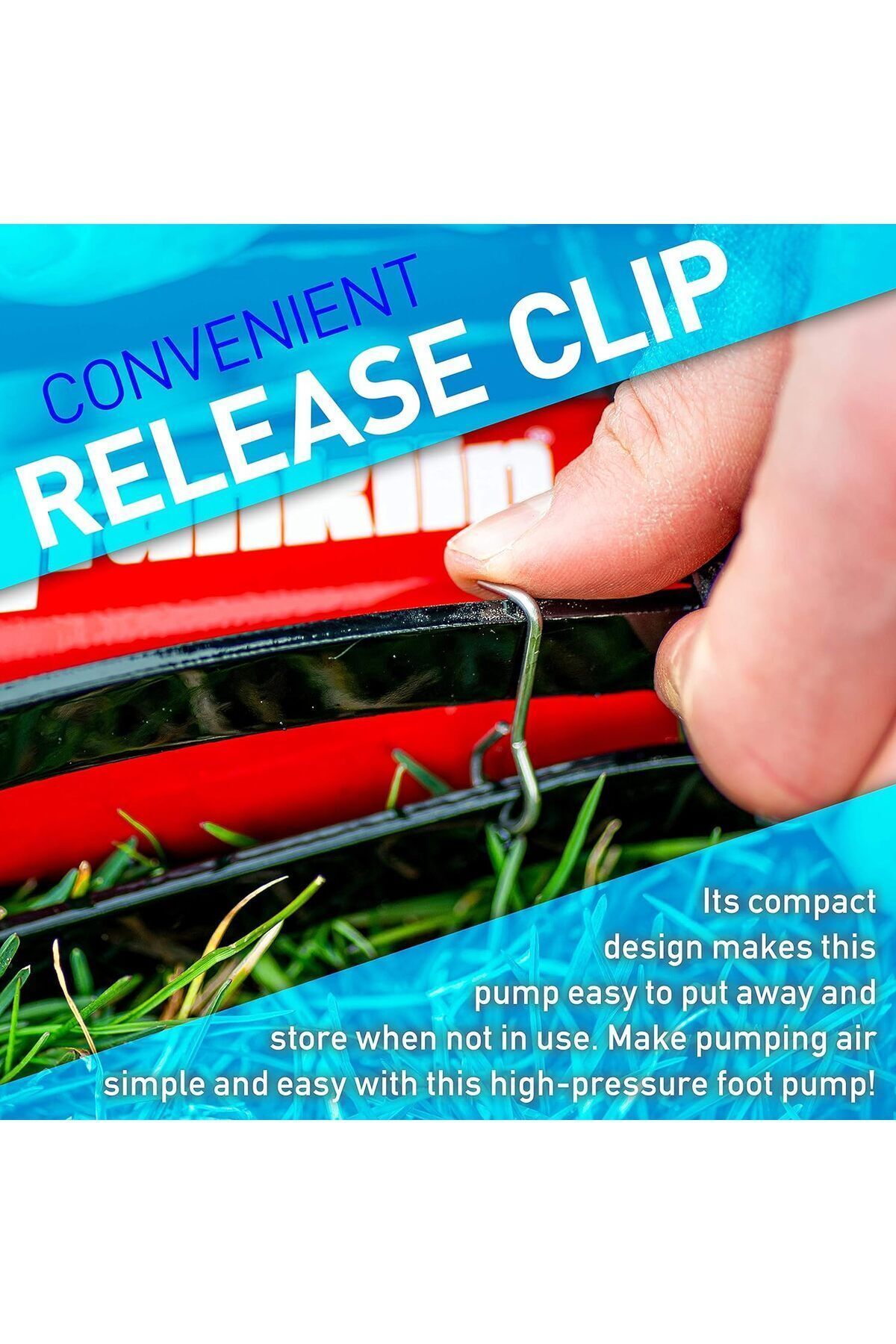 AYAKLA ÇALIŞAN: Ayak pompası tasarımı, bir el pompasının tüm fiziksel emeği olmadan ihtiyacınız olan her şeyi şişirmeyi kolaylaştırır.